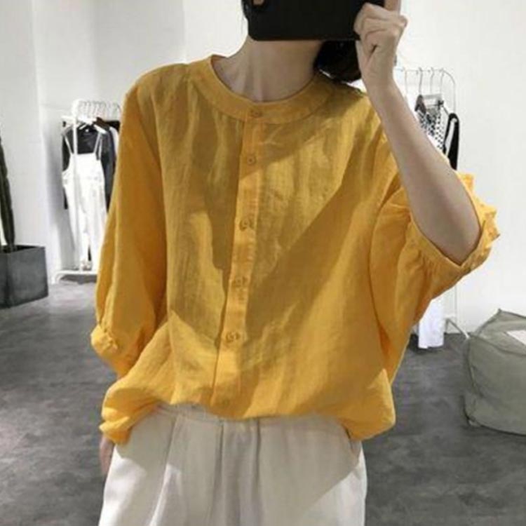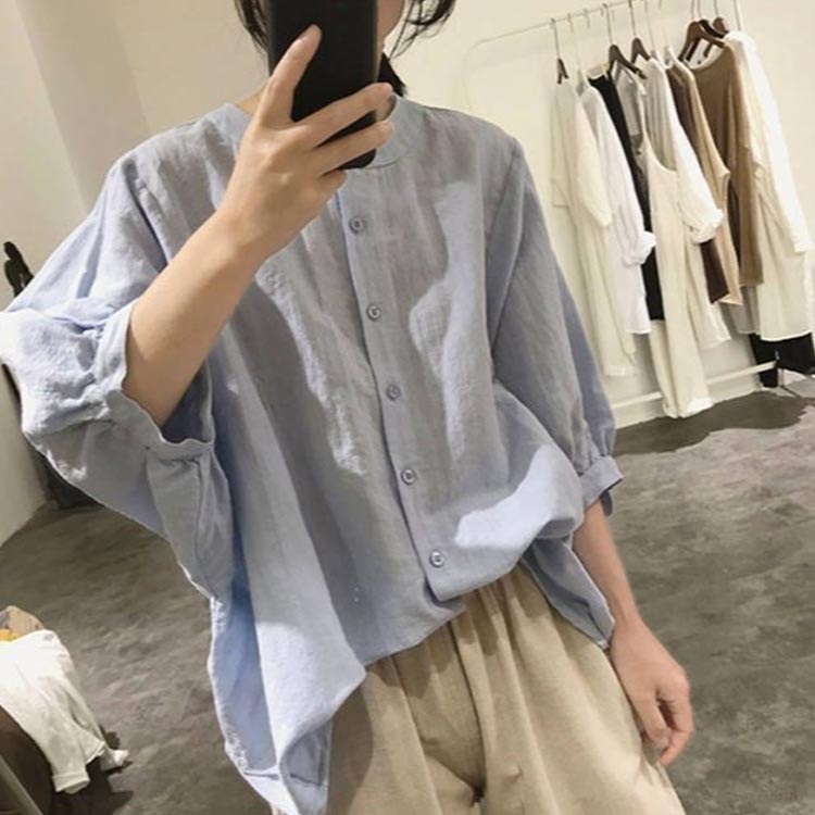 綿麻 トップス 体型カバー 7分袖 ブ