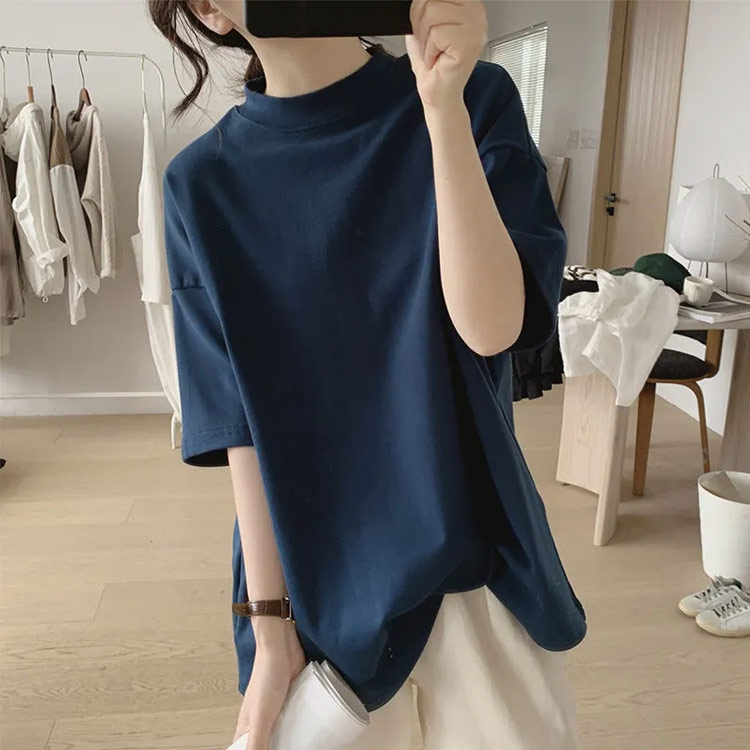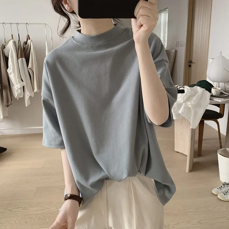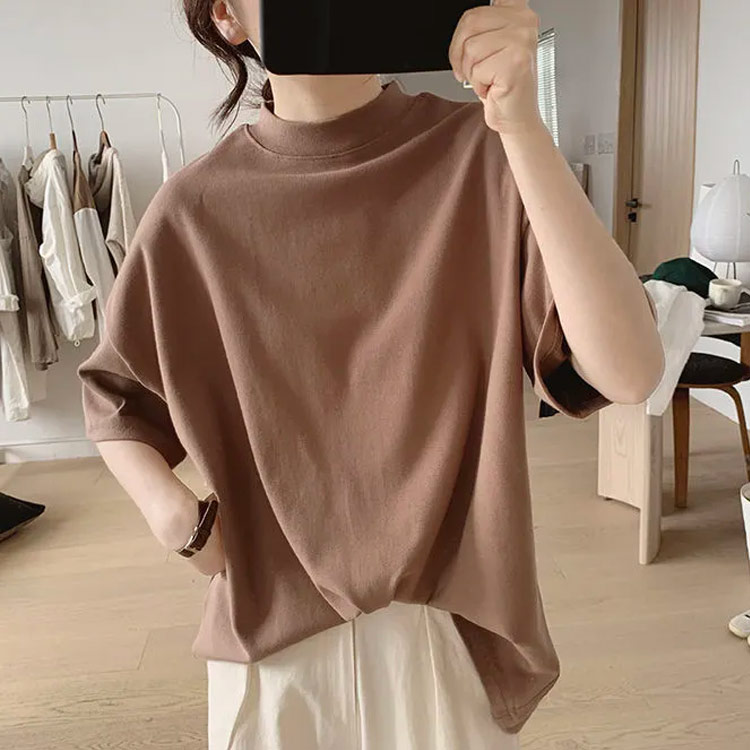 カジュアル 5分袖カットソー モックネ