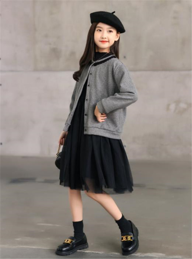 グレー キッズ衣装子供服ジャケット+スカート2点セット子供スーツ 女の子 入園式 入学式 卒園式 卒業式 結婚式 発表会 七五三 上下セット フォーマル 子供用 120 130 140 150 160