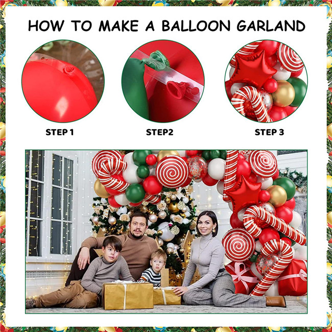 付属のバルーンチェーンの穴に風船の結び目をはめて留めます。初めての方でも楽しくボリューム満点のデコレーションが作れます。