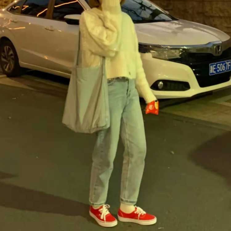 デニムパンツ ビジュー付き