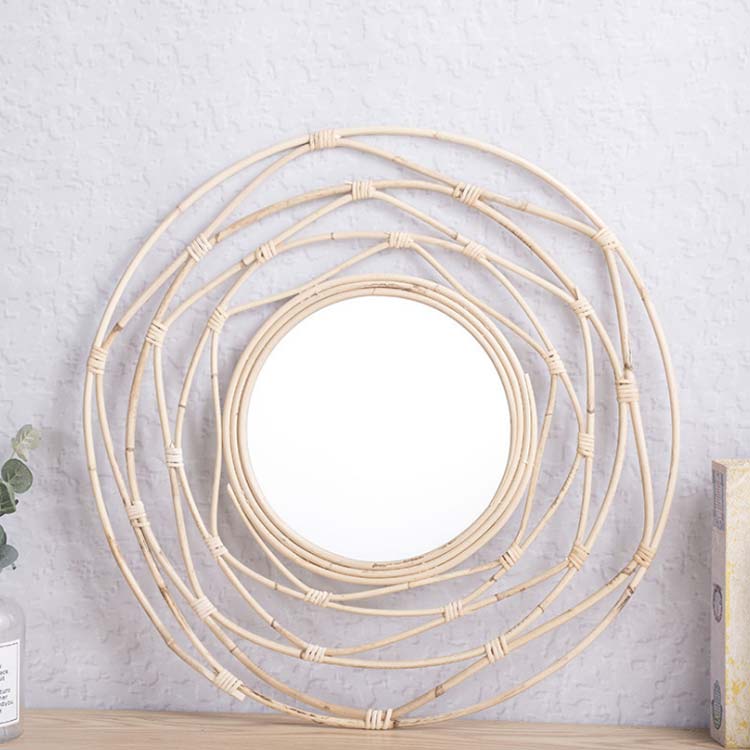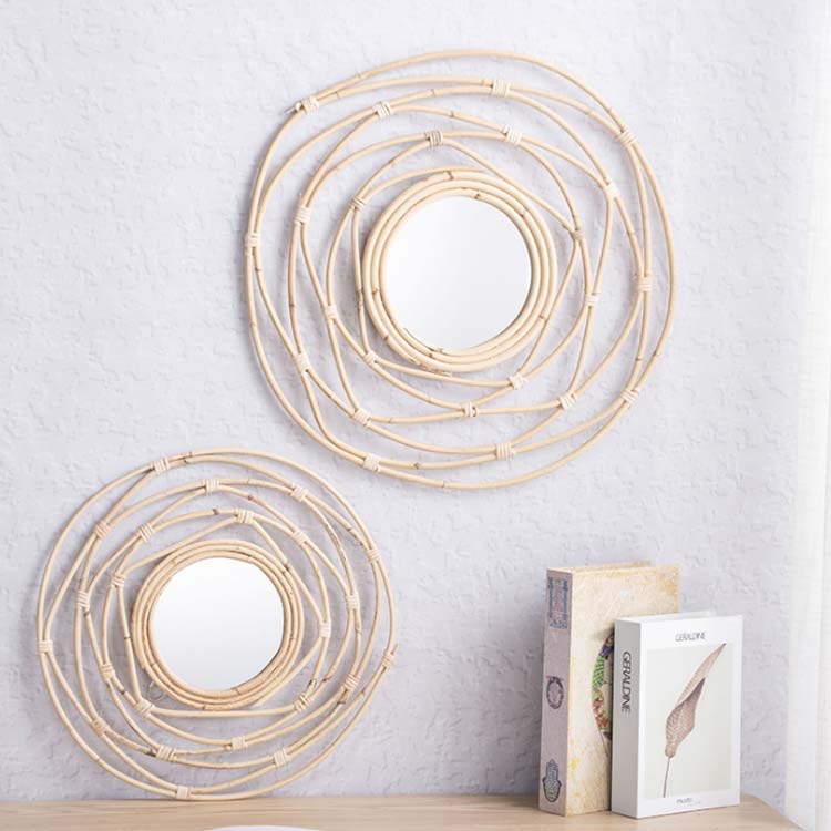 壁掛け鏡 籐製 鏡 ミラー 壁掛けミラ