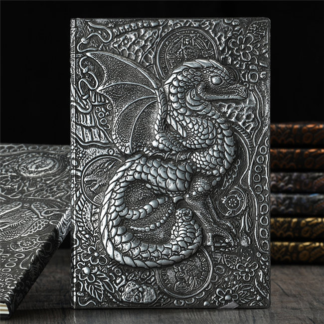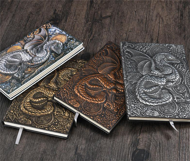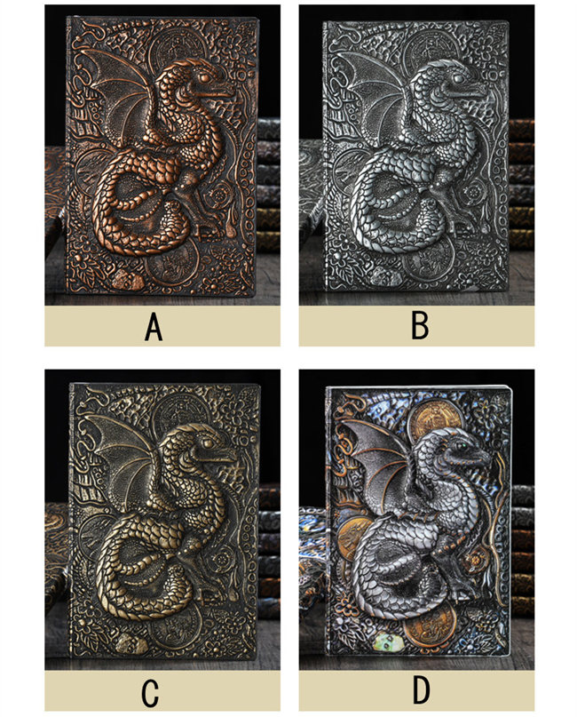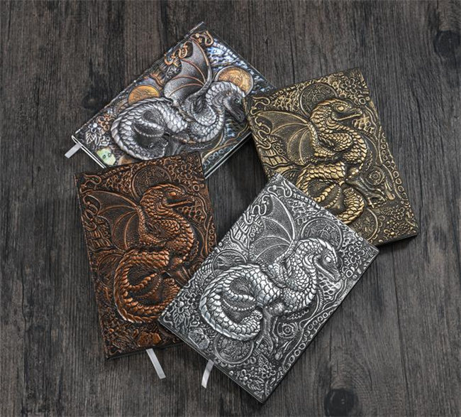 4色展開21.5*14.5CM 手帳アンティーク風表紙A5 浮き彫りヨーロッパ風日記帳 3 D立体欧風復古レリーフメモ帳 ヨーロッパ風PU日記帳 旅行日記帳 浮き彫り 恐竜柄