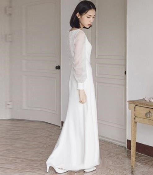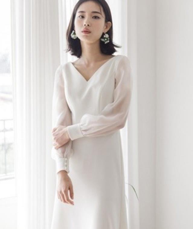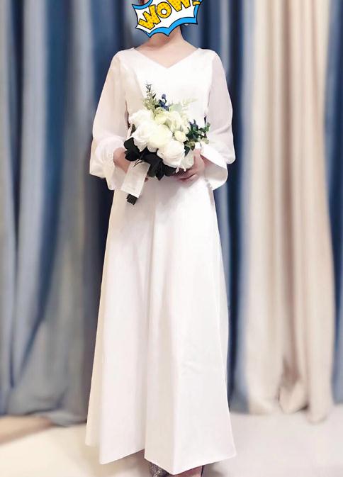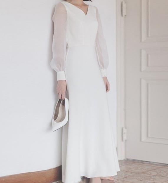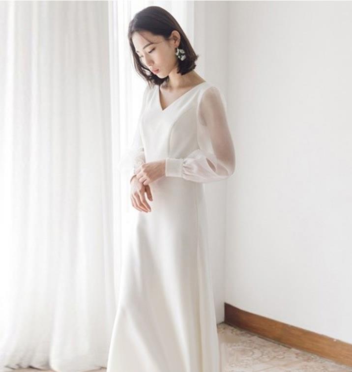 ウェディングドレスAライン長袖 ロングドレス ウェディングドレス レース 素地 ファスナータイプWedding Dressお花嫁結婚式旅行撮影演出レディースウェディングドレス 透け感あり