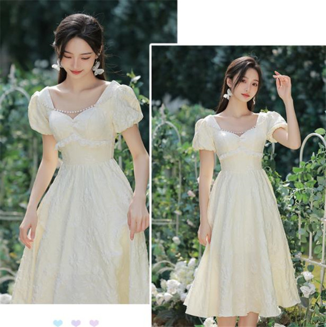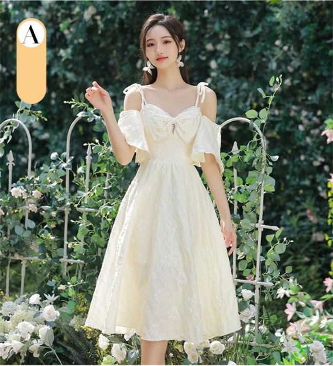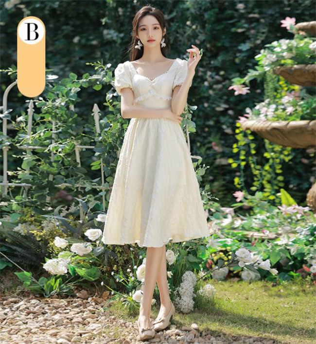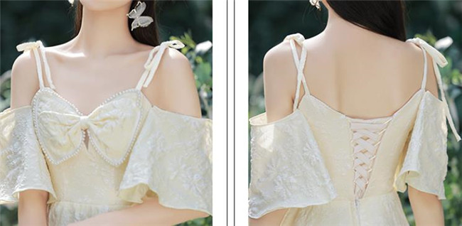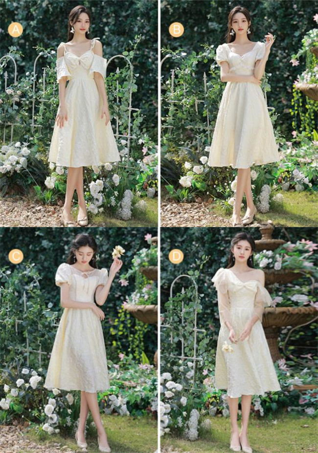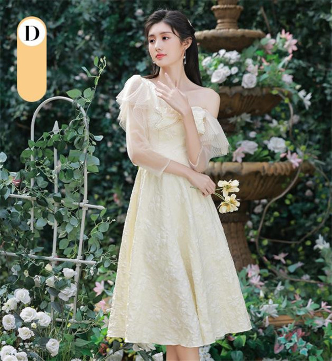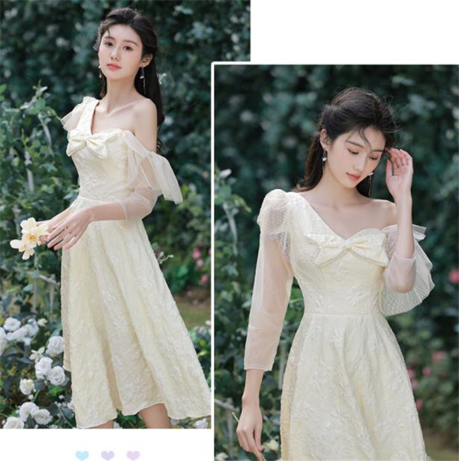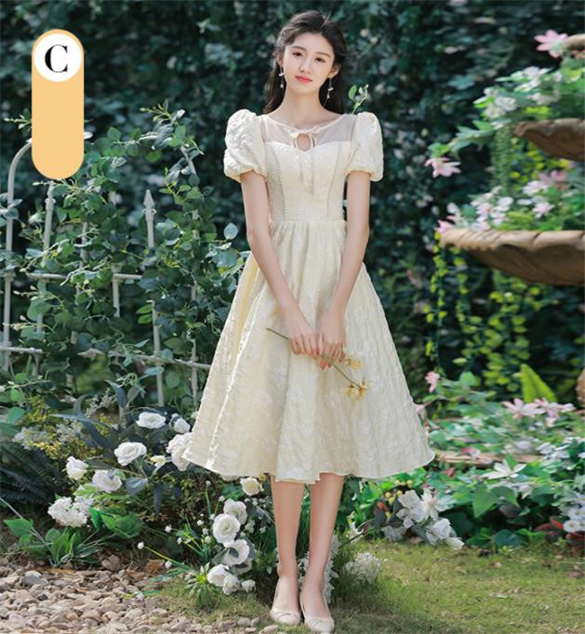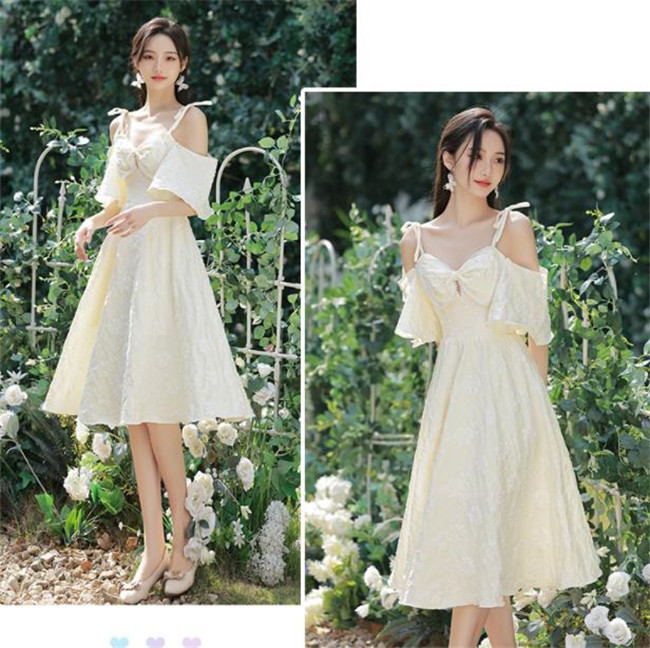 シャンパン ブライズメイドドレスパーティードレスワンピース二次会演出司会結婚式お呼ばれ ミディアム丈、ミモレ丈ブライズメイドドレス二次会ドレスフォーマルドレス