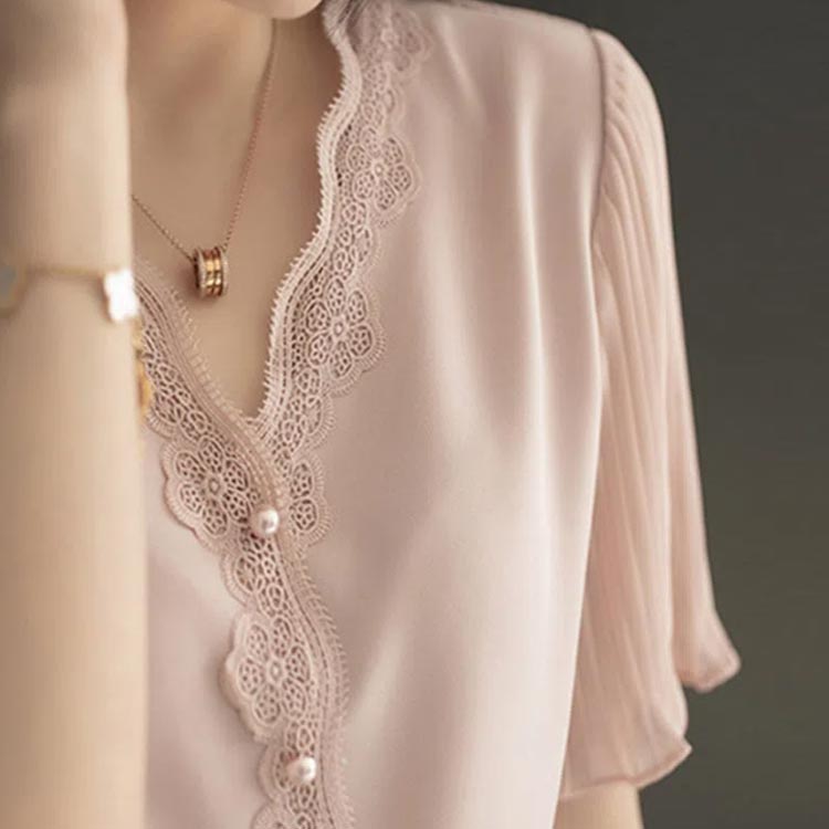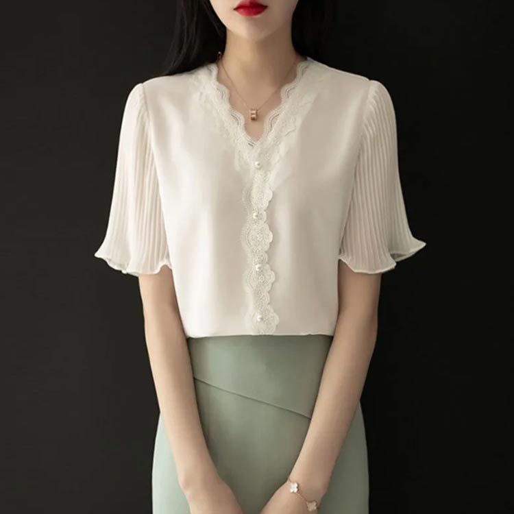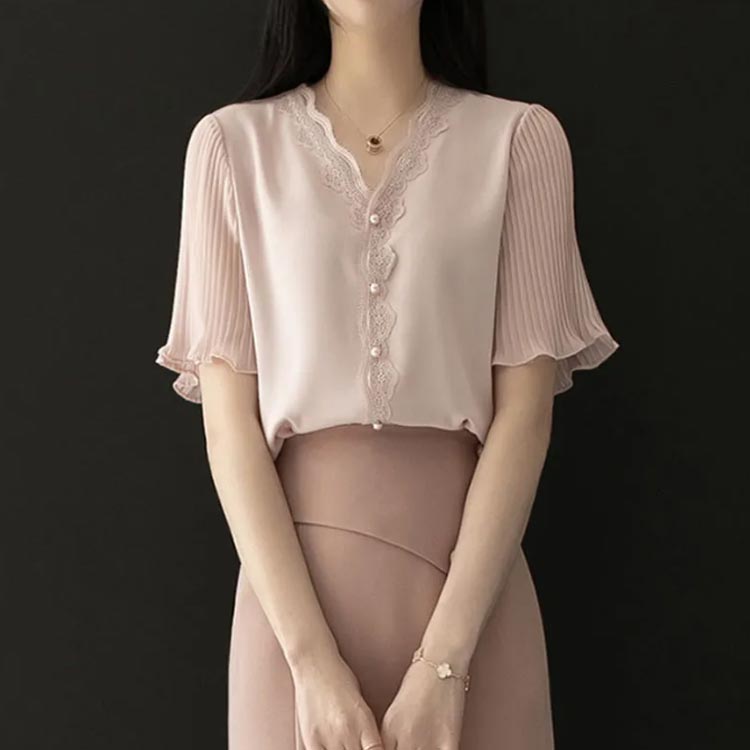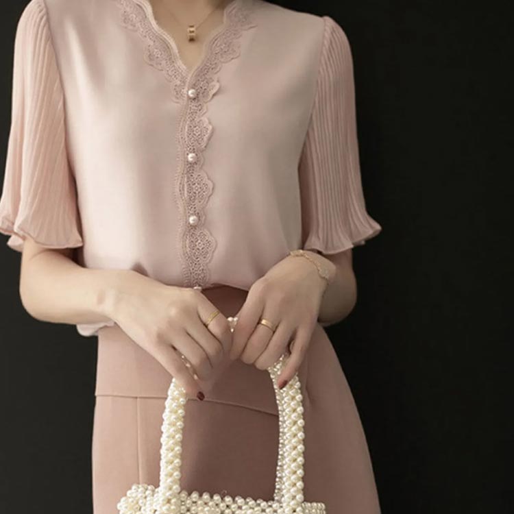 シフォンブラウス 上品 半袖 大人可愛