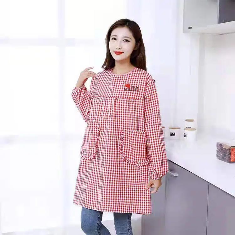 割烹着 ポケット付き 汚れ防止 長袖