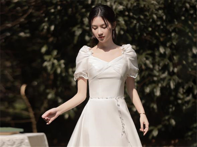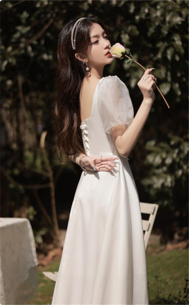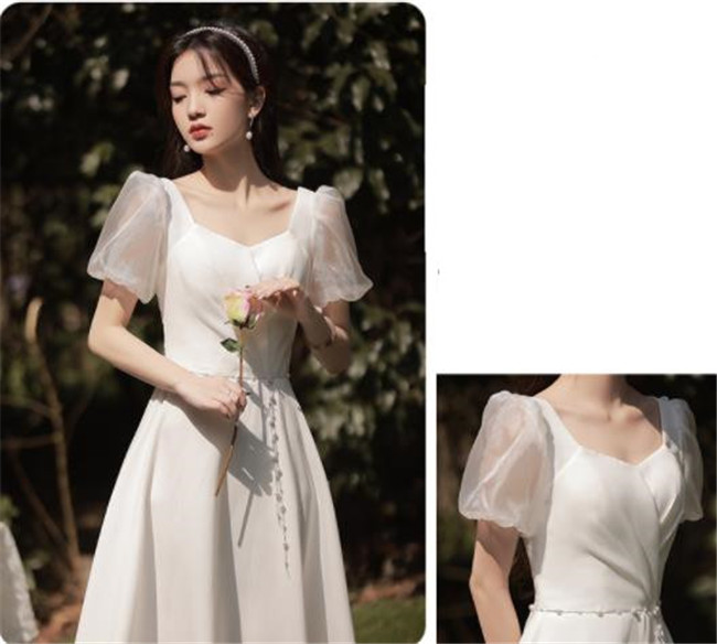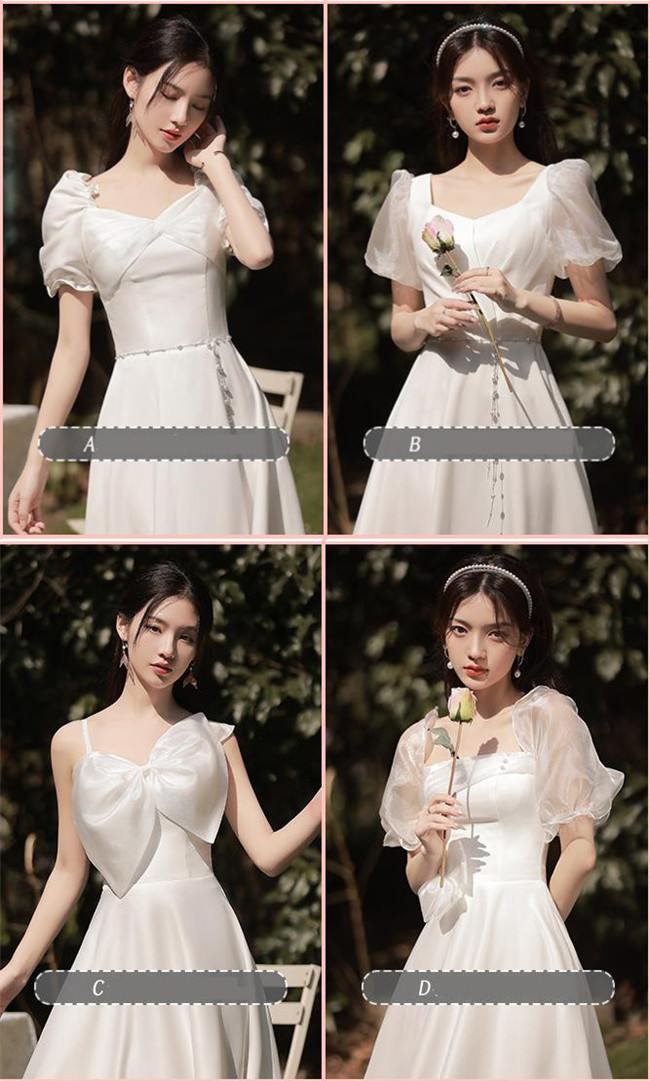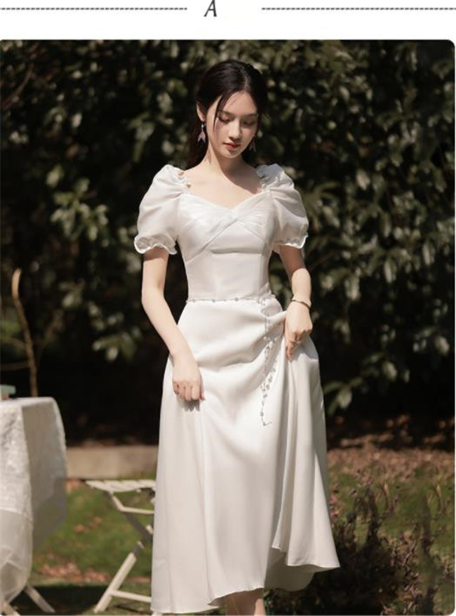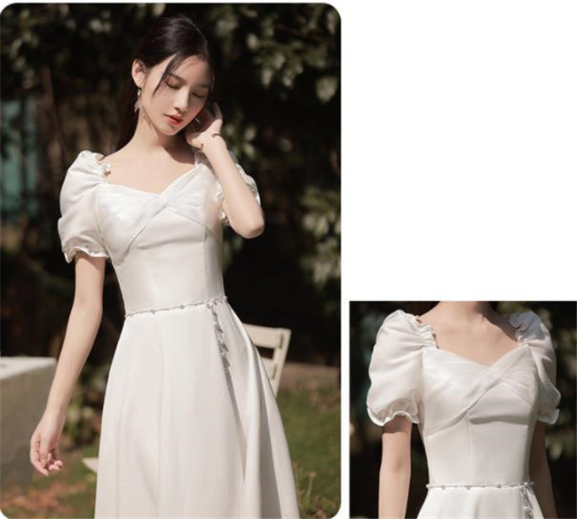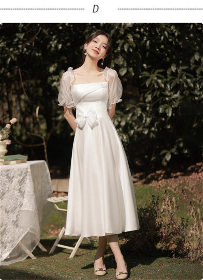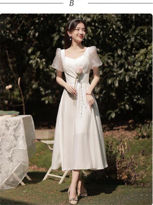 ホワイト ブライズメイドドレスパーティードレスワンピース二次会演出司会結婚式お呼ばれ ミディアム丈、ミモレ丈ブライズメイドドレス二次会ドレスフォーマルドレス