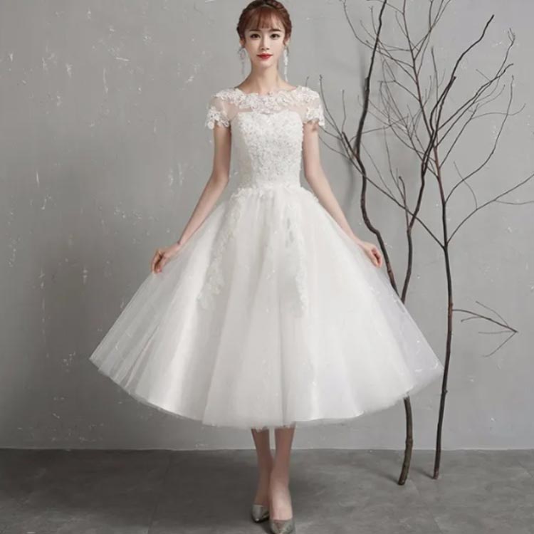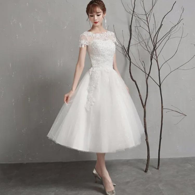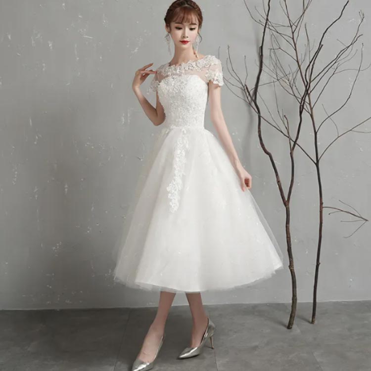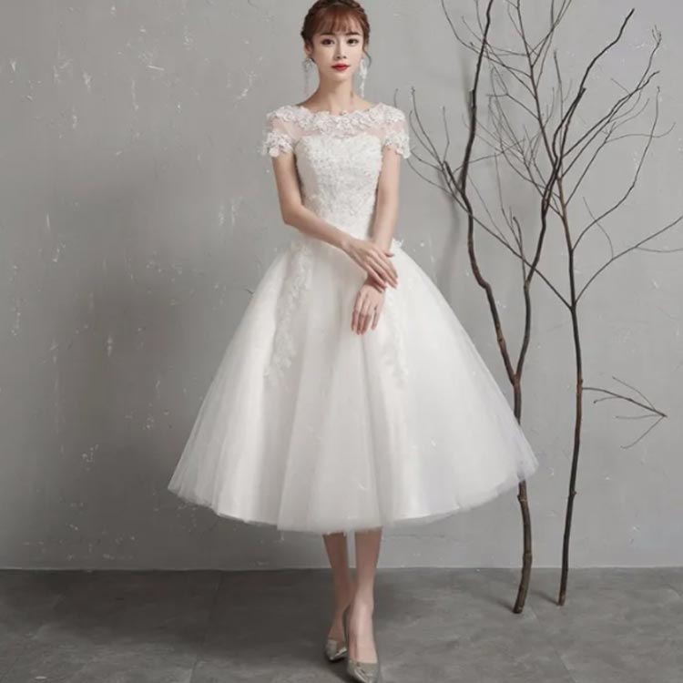 ミモレ丈ドレス ウェディングドレス ミ
