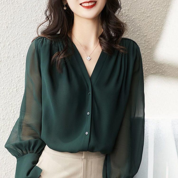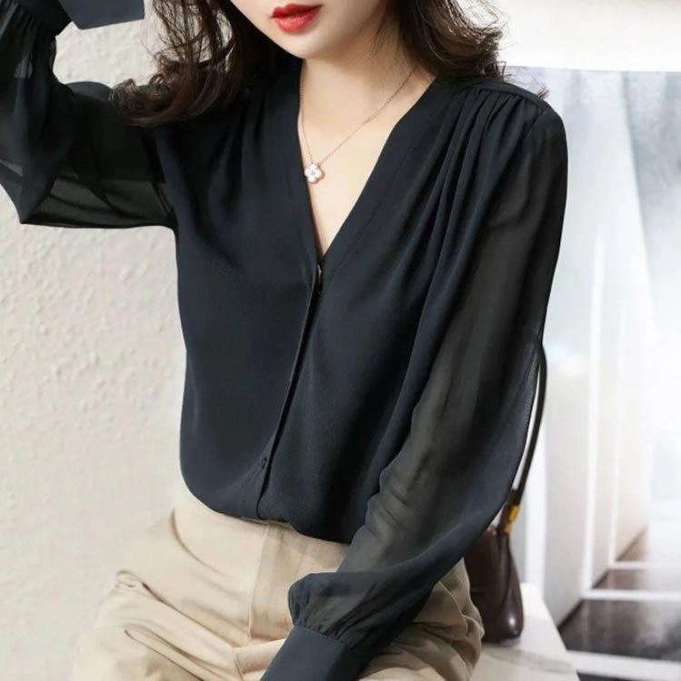 シフォンブラウス シアーブラウス ボリューム袖