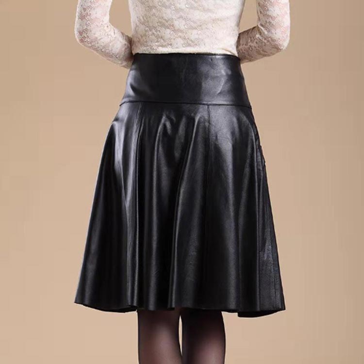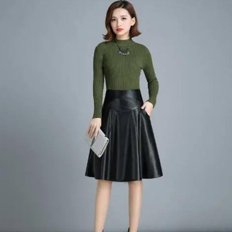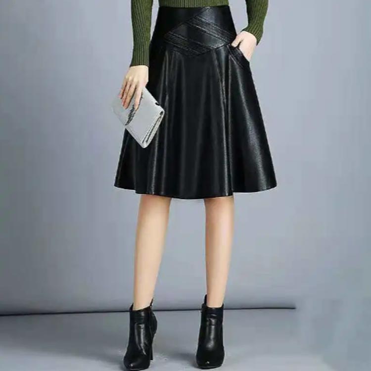 ハイウエスト 膝上 レザースカート 膝