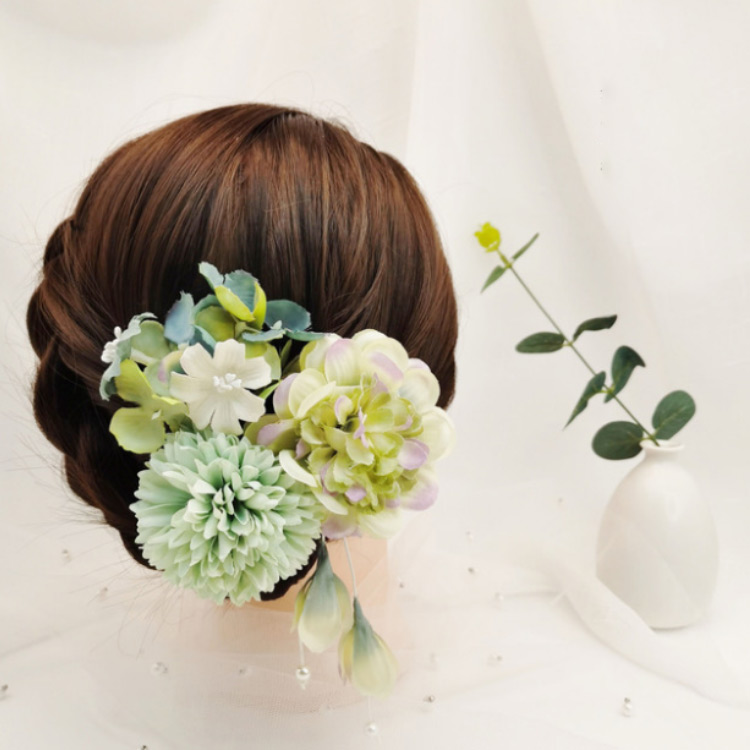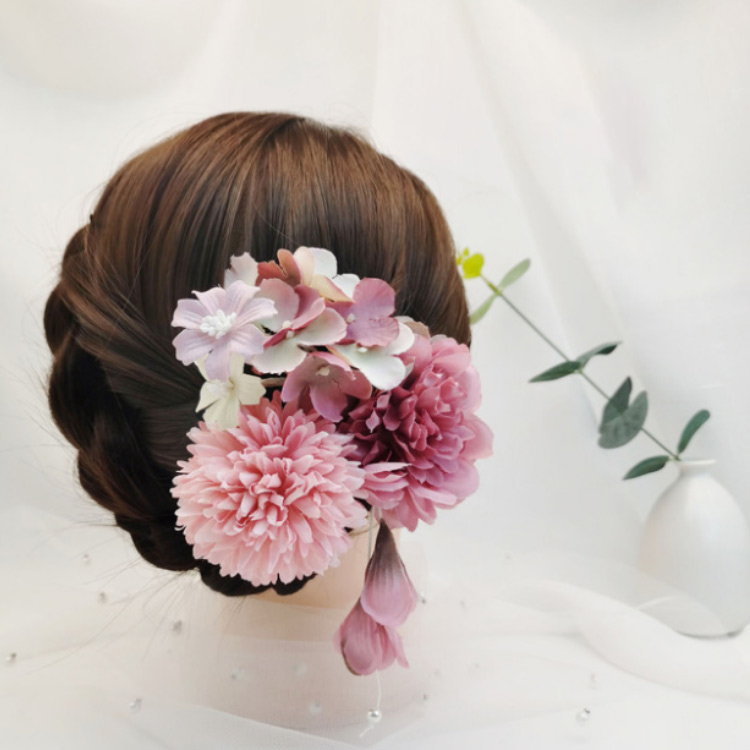 髪飾り 花 3点セット×4色 成人式