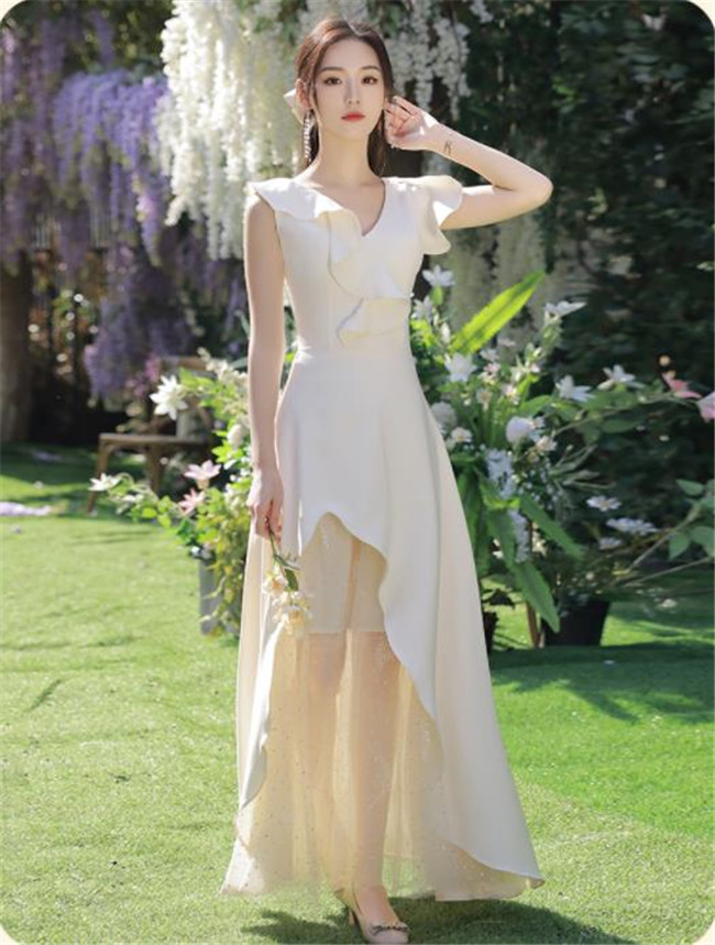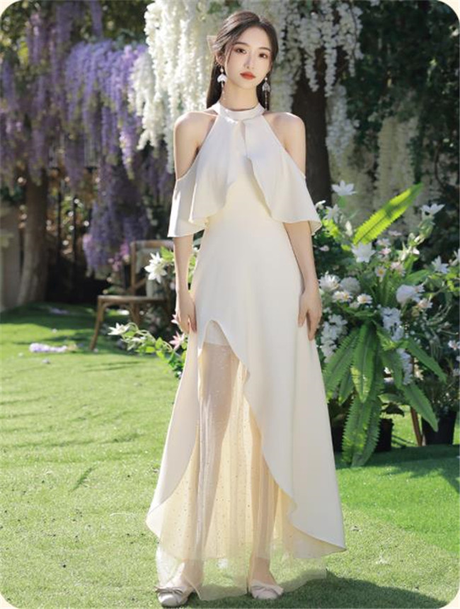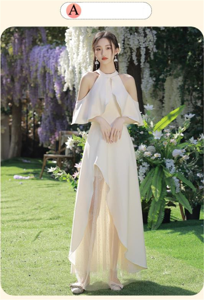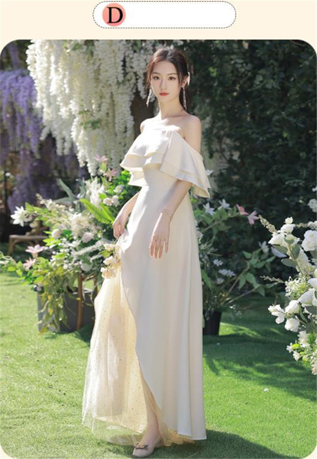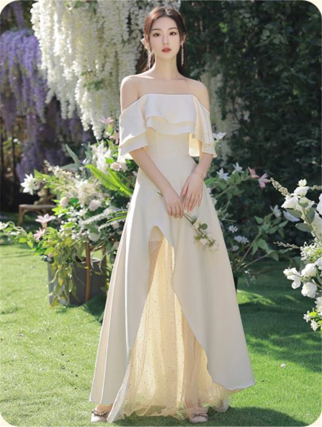 シャンパン ブライズメイドドレスパーティードレスワンピース二次会演出司会結婚式お呼ばれ ロングドレスマキシ丈ブライズメイドドレス二次会ドレスフォーマルドレス