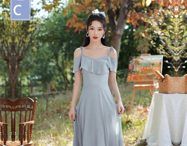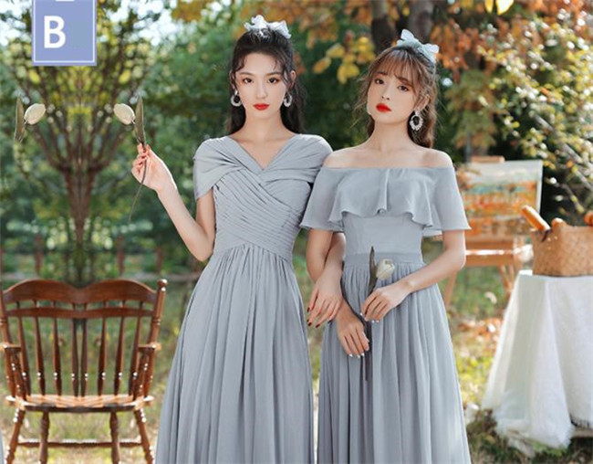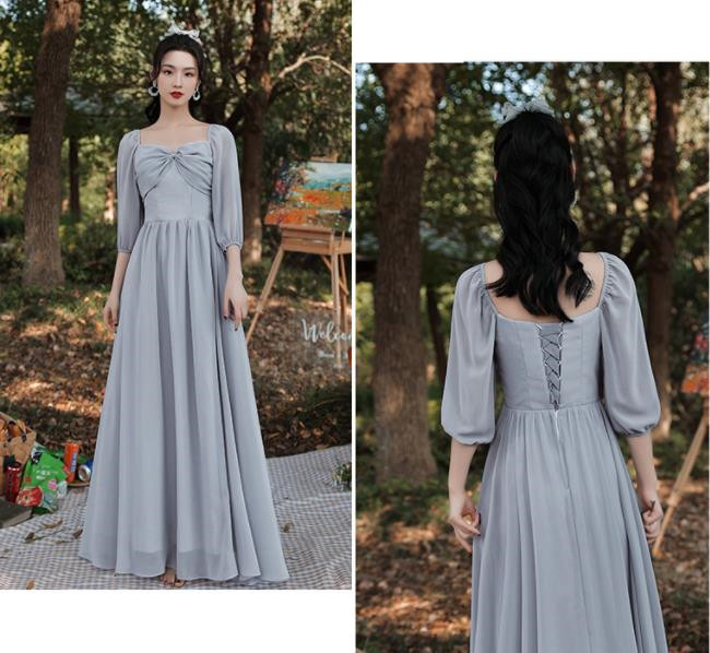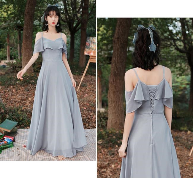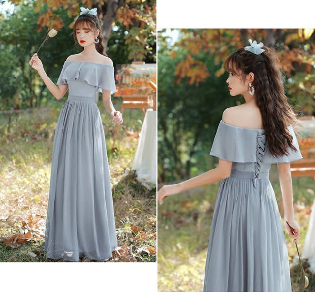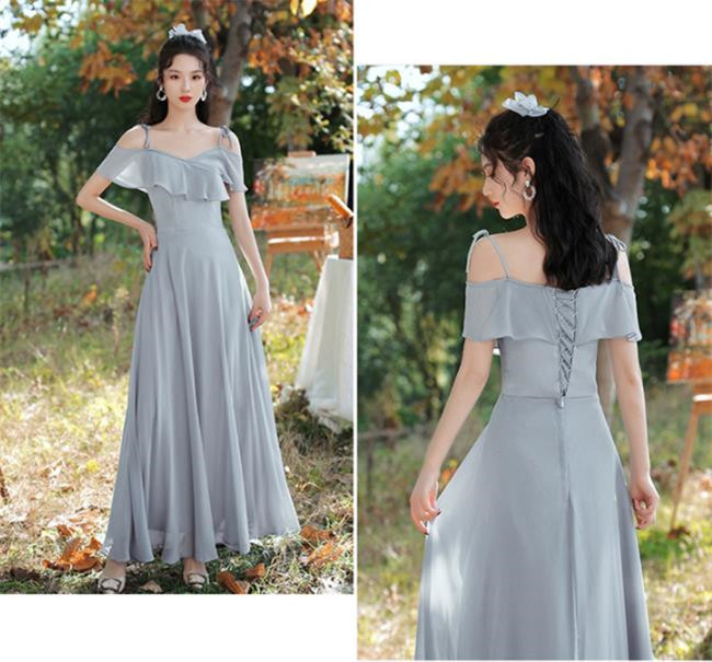 グレー ブライズメイドドレスパーティードレスワンピース二次会演出司会結婚式お呼ばれ ロングドレスマキシ丈ブライズメイドドレス二次会ドレスフォーマルドレス