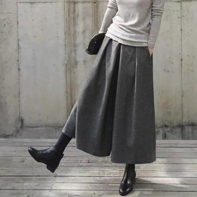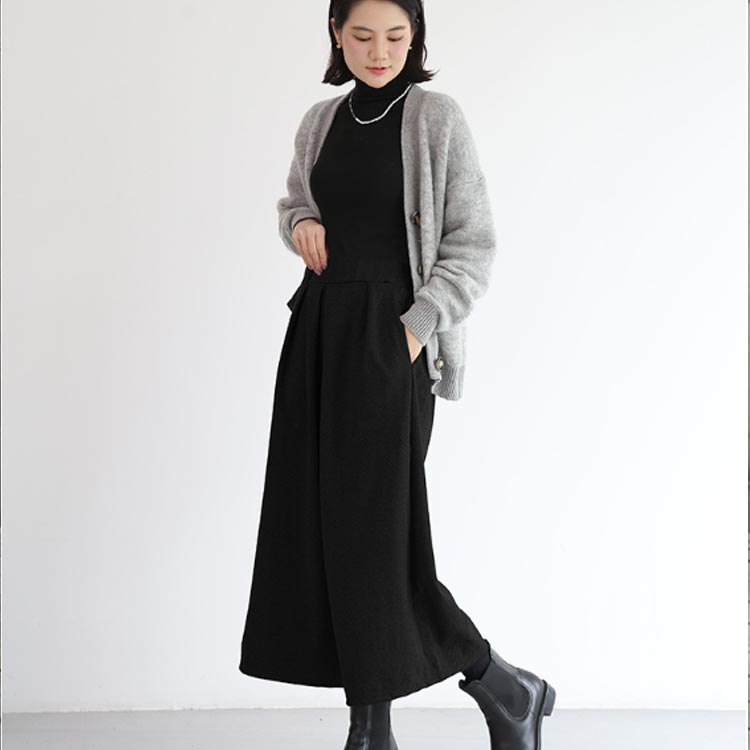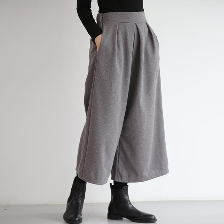 ワイドパンツ ウール調 微起毛 秋冬