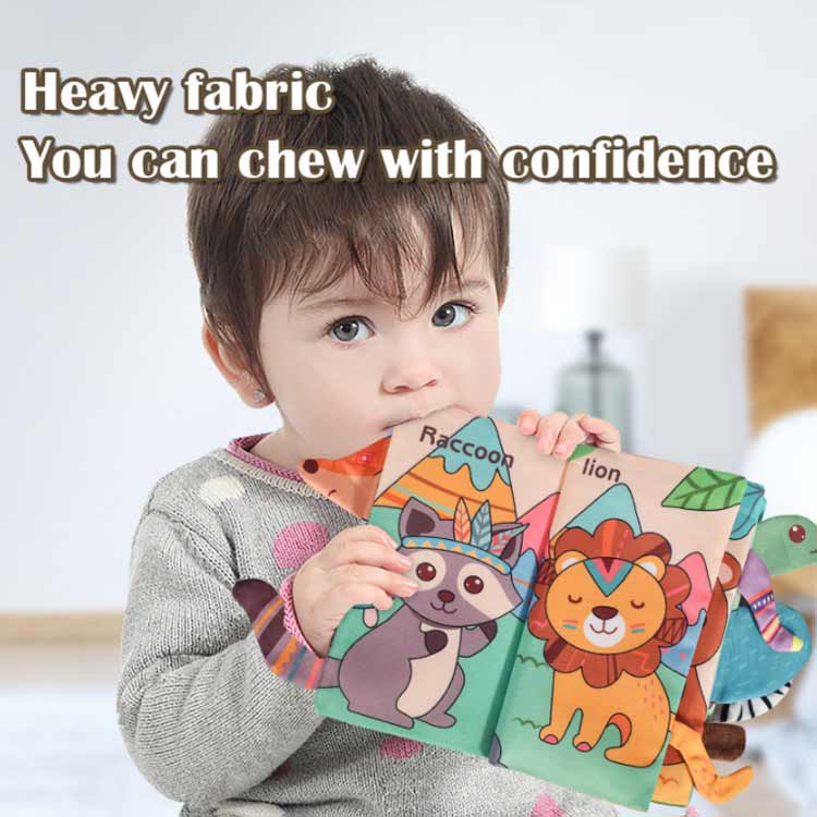 楽しめる布絵本は、脳への刺激や指先のトレーニングなど、遊びながらさまざまな効果も期待できる玩具として、紙の絵本のように破れる心配もないので、触ったり舐めたり口に入れたりと、思う存分遊ばせてあげられるのも魅力のひとつです。カラフルな色使いのものや、カシャカシャ・パリパリ音のするもの、異なる手触りの素材が使われているものなど、言葉以外で楽しめるものになります。好みの動物を見つけたり、興味のある色や絵に反応したりと、好奇心の芽生えを感じられるでしょう。