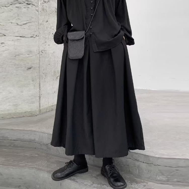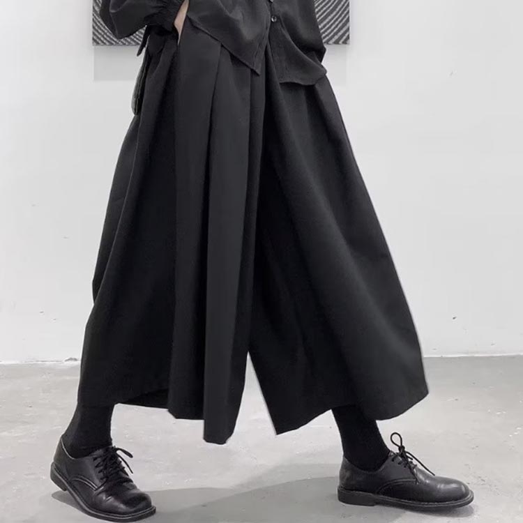 冬 メンズ ワイドパンツ 黒 袴パンツ