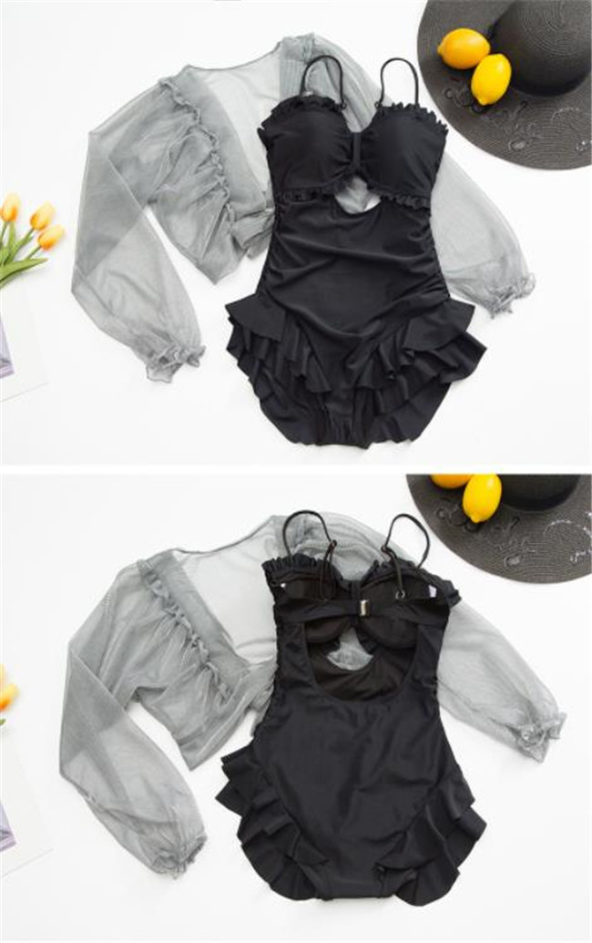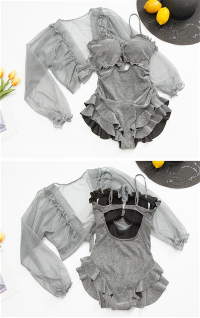 レディース 水着 ビキニ レディースカバーアップ体型カバー グレー ブラック セクシーチュニック総うレース ワンピースキャミソールかわいい