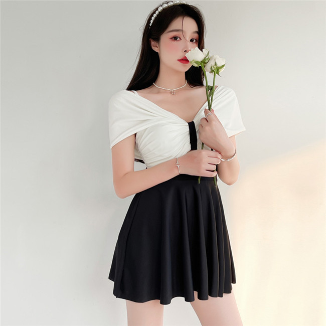 レディース 水着 ビキニ レディースカバーアップ体型カバー ブラック+ホワイト セクシーチュニック総うレース ワンピースキャミソールかわいい