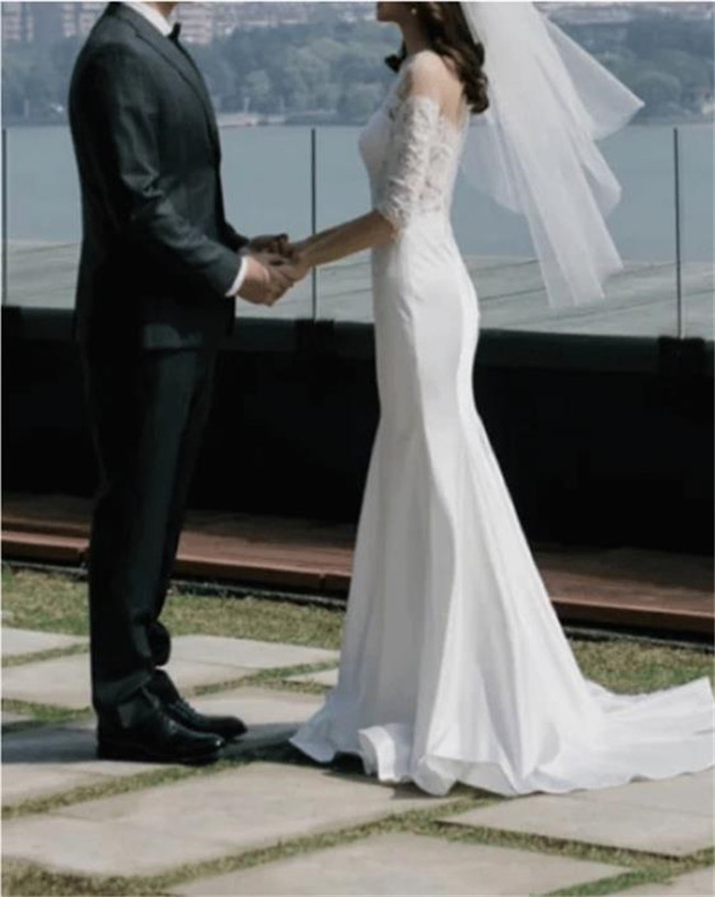 ホワイト 七分袖袖あり ウェディングド