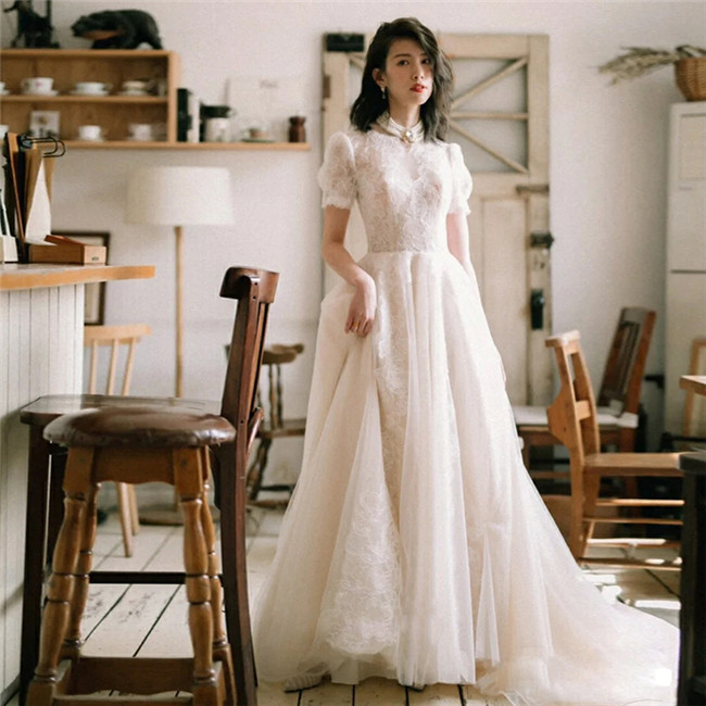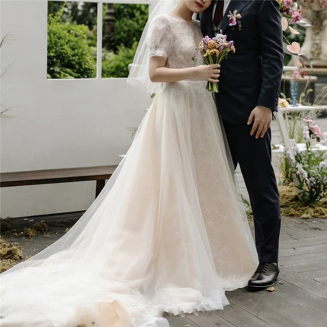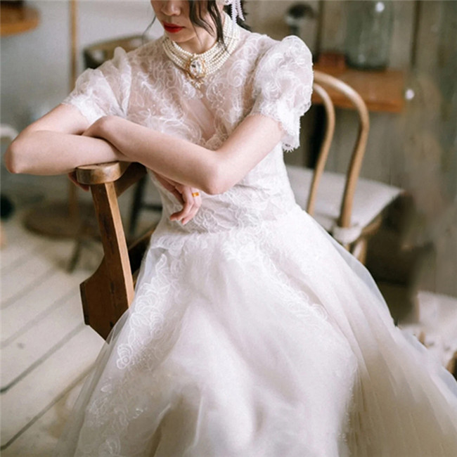 ホワイト 半袖袖あり ウェディングドレ