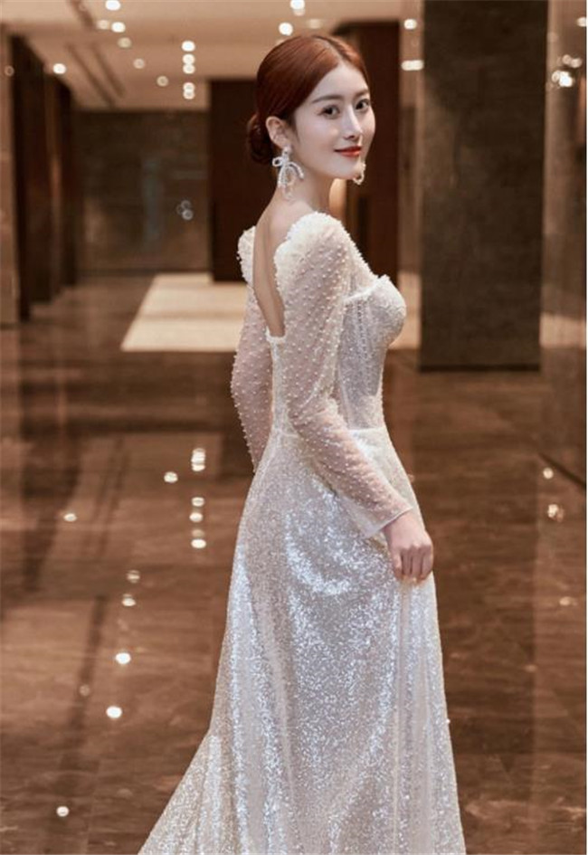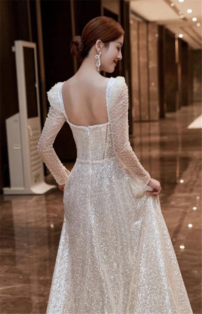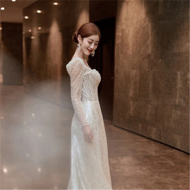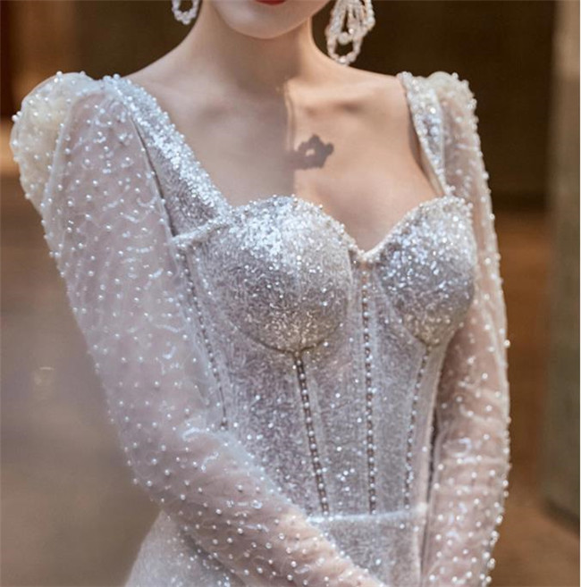 シルバー 長袖袖あり ウェディングドレスAラインファスナータイプ床付きタイプ レース 素地 xs~xlWedding Dressお花嫁結婚式旅行撮影演出レディースウェディングドレス
