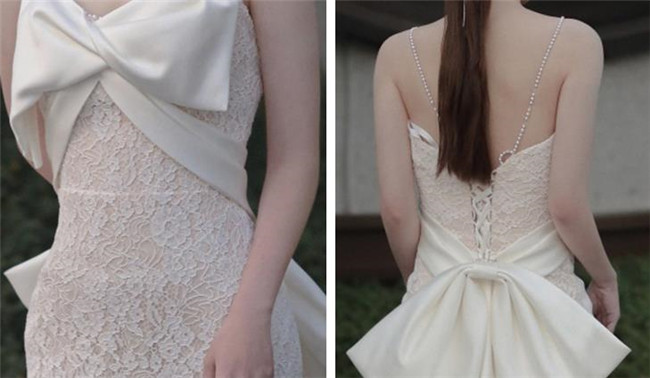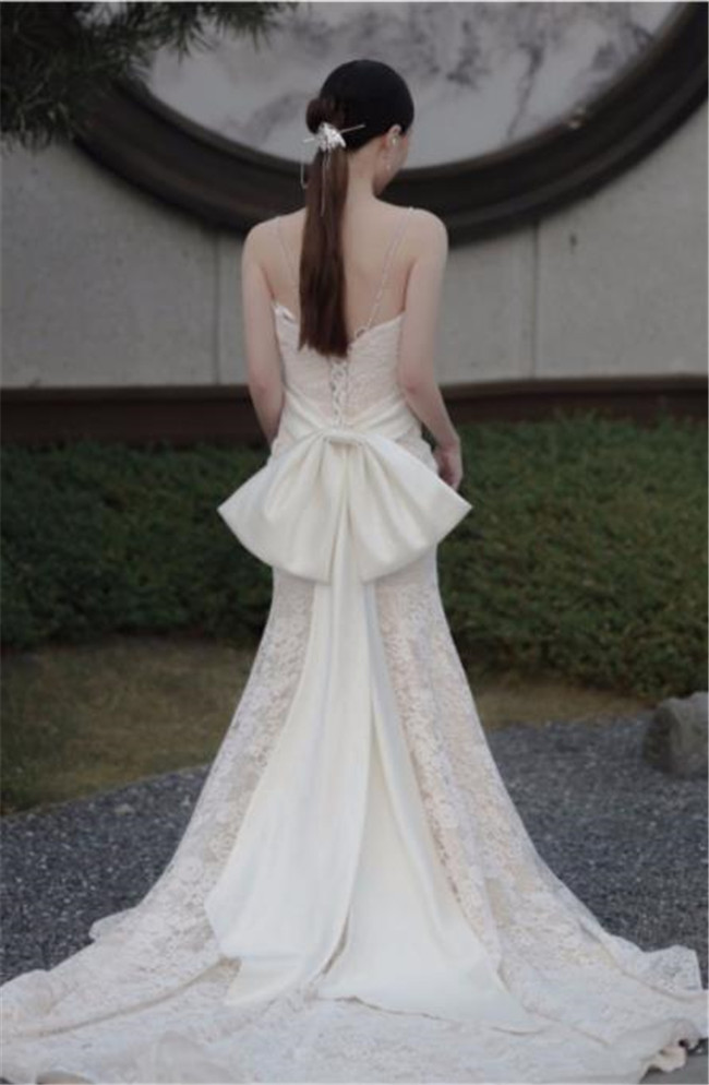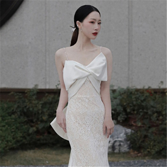 ホワイト 吊りスカート ウェディングドレスAライン編上げタイプトレーン レース 素地 xs~xlWedding Dressお花嫁結婚式旅行撮影演出レディースウェディングドレス