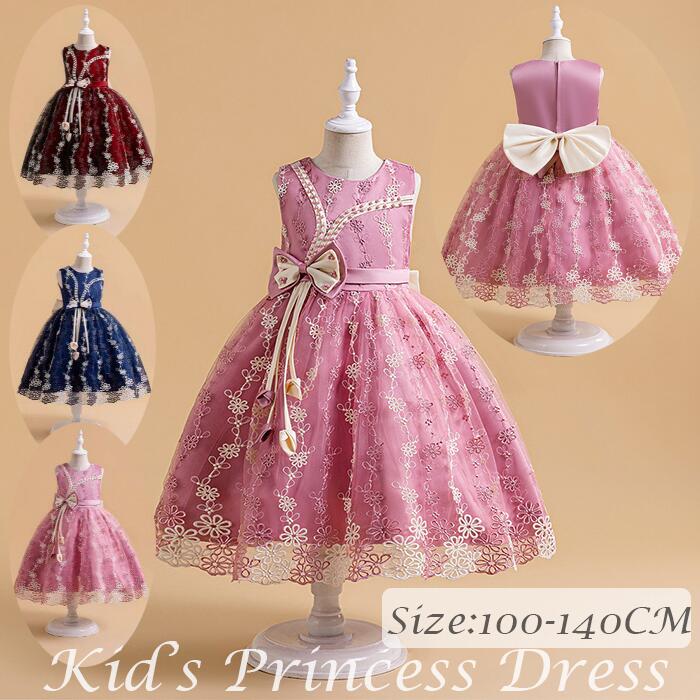 高級感溢れる刺繡柄 子供ドレス発表会ドレスドレス 100cm 110cm 120cm 130cm 140cm子供用フォーマルドレス パーティードレス ワンピース チュールスカート 結婚式 発表会 演奏