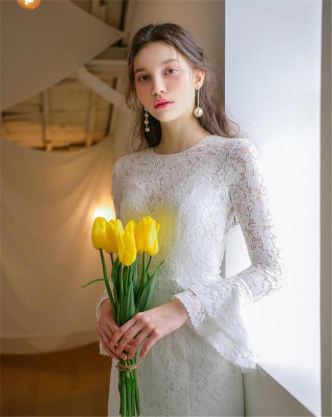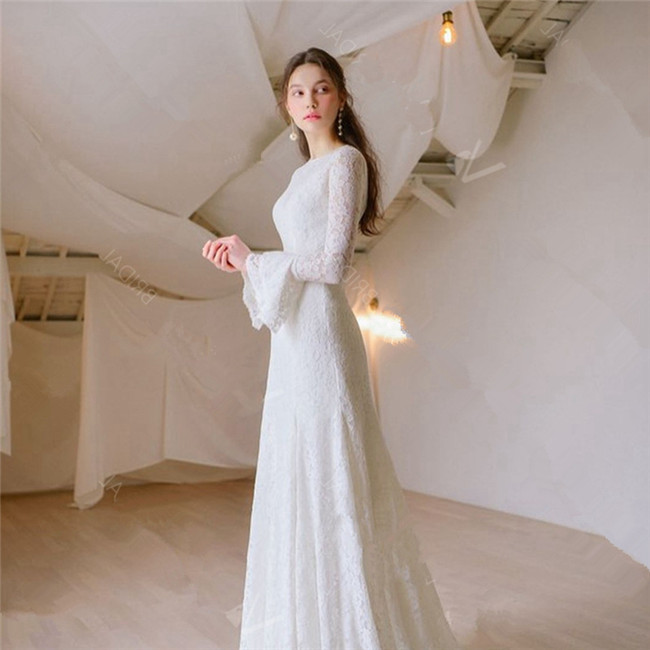 ホワイト 長袖袖あり二次会ドレス パー