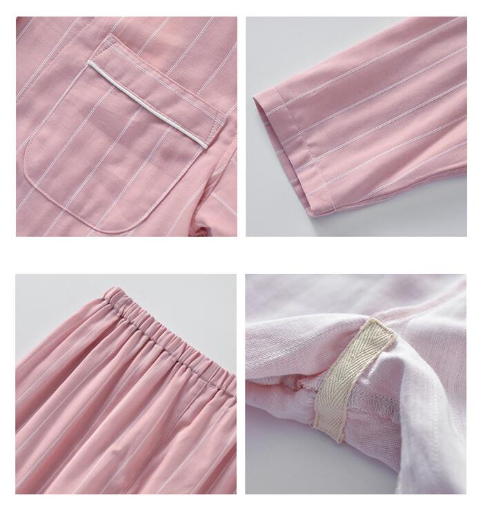 このパジャマは、通気性が非常に良く、肌に優しい2重ガーゼ構造を採用しており、洗濯を重ねるごとにさらに柔らかくなるのが特徴です。