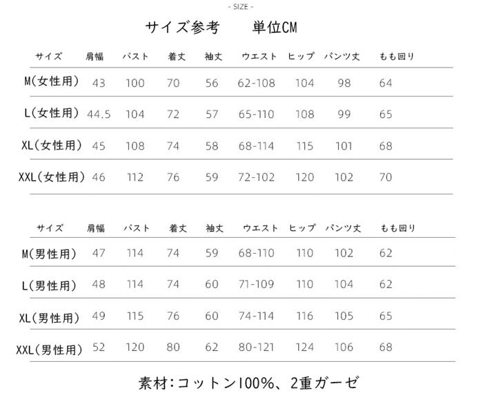 サイズはMからXXLまでご用意しており、男性用もありますので、ペアでのコーディネートも楽しめます。