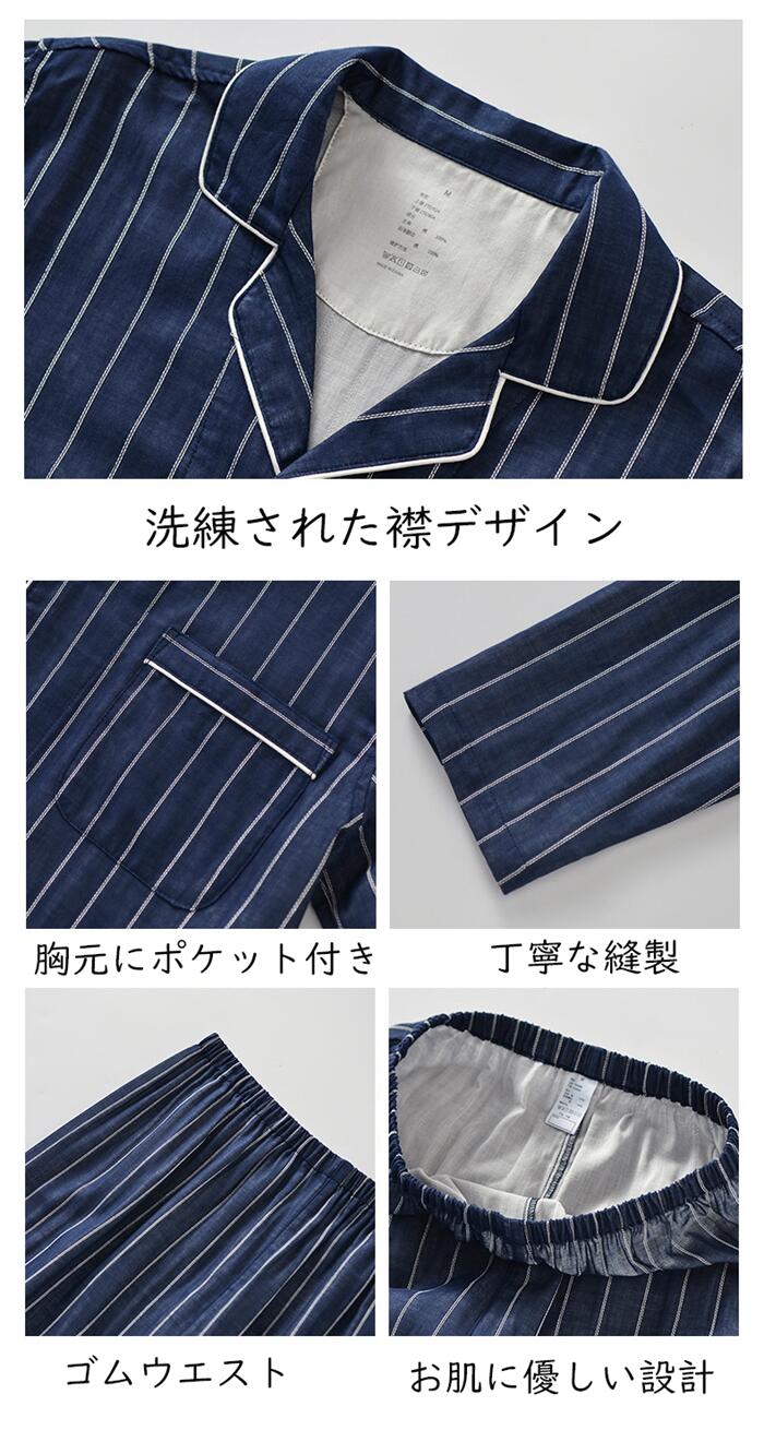 高品質で上品なデザインが魅力のメンズ・レディース兼用パジャマは、綿100%のダブルガーゼ素材で、夏の夜も快適に過ごせる一着です。