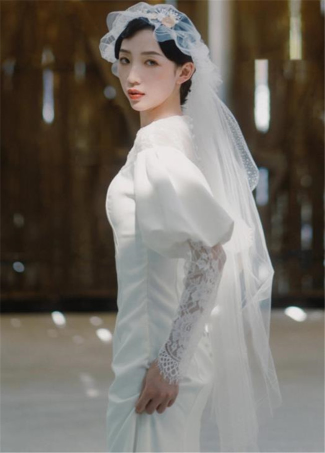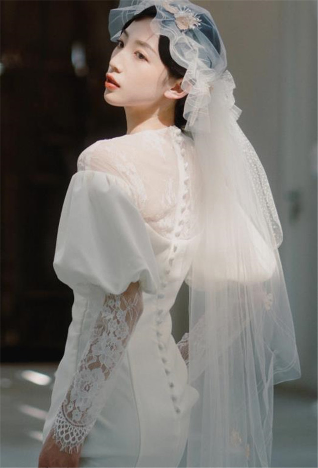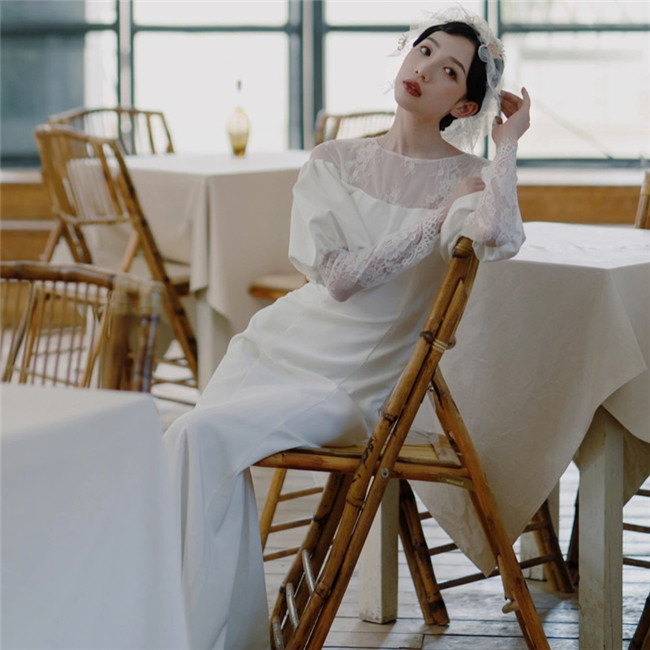 ホワイト 長袖袖あり ウェディングドレスAラインファスナータイプトレーン xs~lWedding Dressお花嫁結婚式旅行撮影演出レディースウェディングドレス