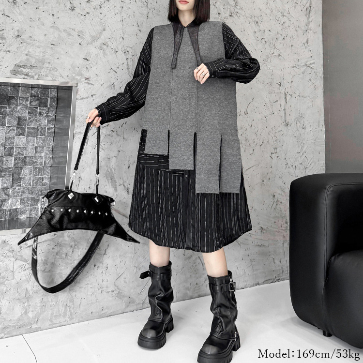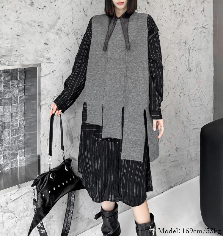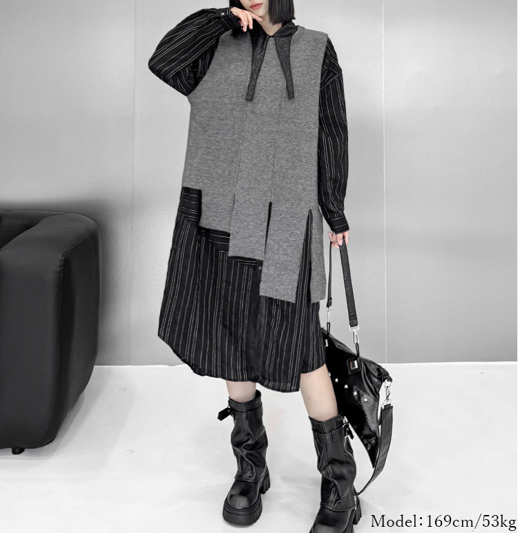 シアースリーブ ドッキングシャツ ボウタイシャツブラウス