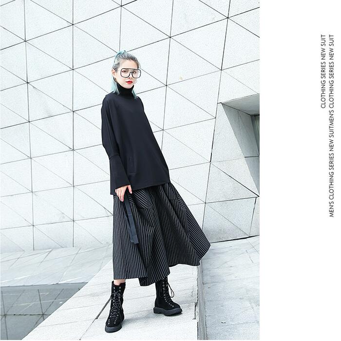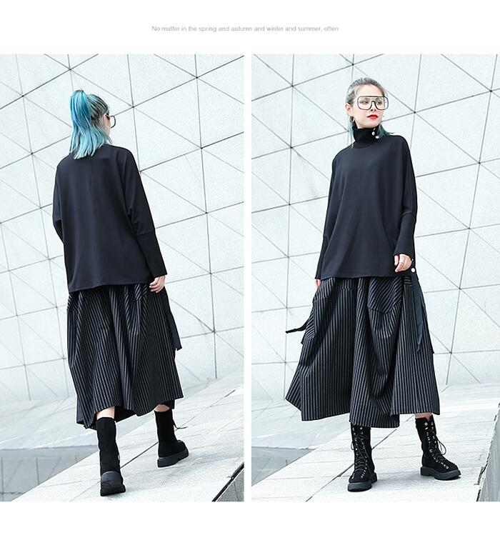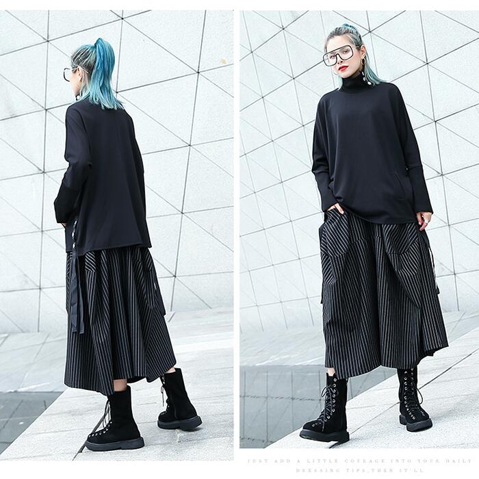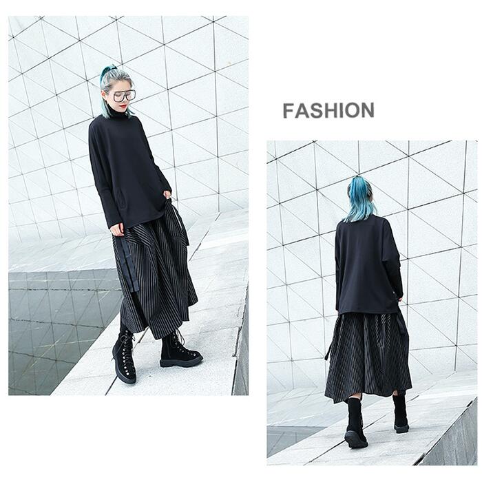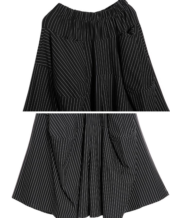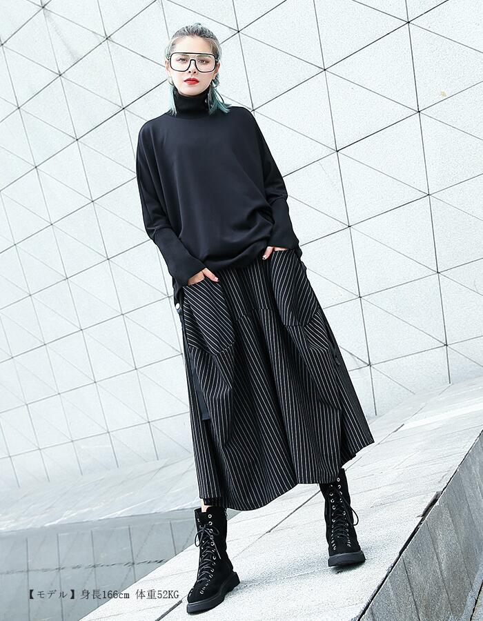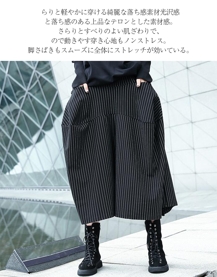 スカート風ワイドパンツ レディース 春 秋 冬 七分丈 袴パンツ ストライプ柄パンツ ガウチョパンツ 個性的 モード系 男女通用 ハイウエスト ウエストゴム ボトムス ポケット付き 美ライン 楽ちん