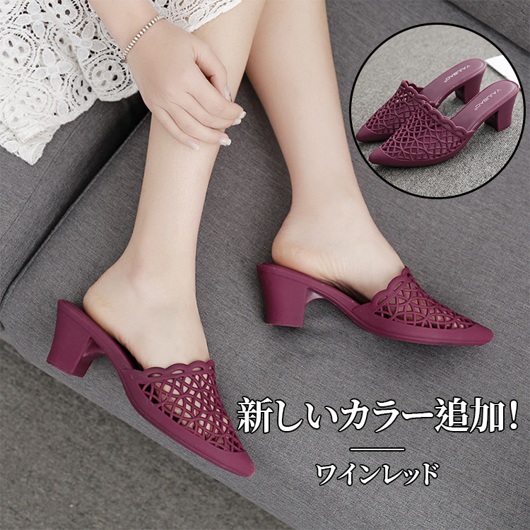 メッシュ編み ミュールサンダル 5.5センチヒール レディース ビーチ サンダルミュール 春夏 靴 サンダル トングサンダル ローヒール 大きいサイズ ぺたんこ 歩きやすい 痛くない 23 スリッパシ