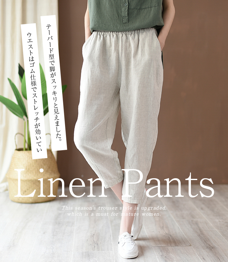 ゆるいのにスッキリ見えるリネンテーパードパンツ リネン レディース パンツ 麻混 無地レディースファッション ボトムス パンツ