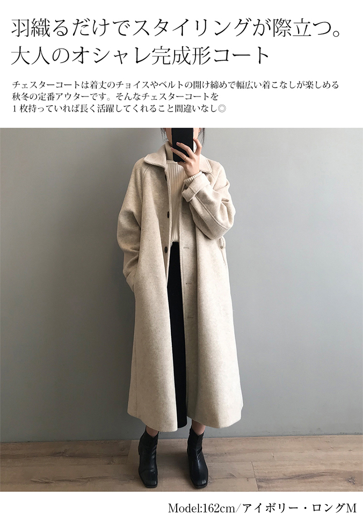 とらみ■商品名チェスターコート レディース 秋 冬 チェスターコート ロングコート 裏地付き アウター ジャケット 羽織 ロング丈 厚手 防寒 暖かい 大きいサイズ ベルト付き ゆったり おしゃれ きれいめ お洒落 上品 シンプル 無地 送料無料 敬老の日 プレゼント■サイズ袖丈 胸囲 裾 着丈M 69cm 110cm 170cm 109cmL 70cm 114cm 174cm 110cm多少の誤差が生じる場合がございます。予めご了承下さいませ■関連商品当店のコート・ジャケット 商品一覧 当店の個性溢れるアイテム特集■洗濯表示■素材ポリエステル85% 綿15%なし■カラー■ベージュ、アイボリー画面上と実物では多少色具合が異なって見える場合もございます。ご了承ください。■商品説明秋冬のコーデ完成度を格上げすること間違いなし。ひらりと揺れるロングテーラードが登場!!
