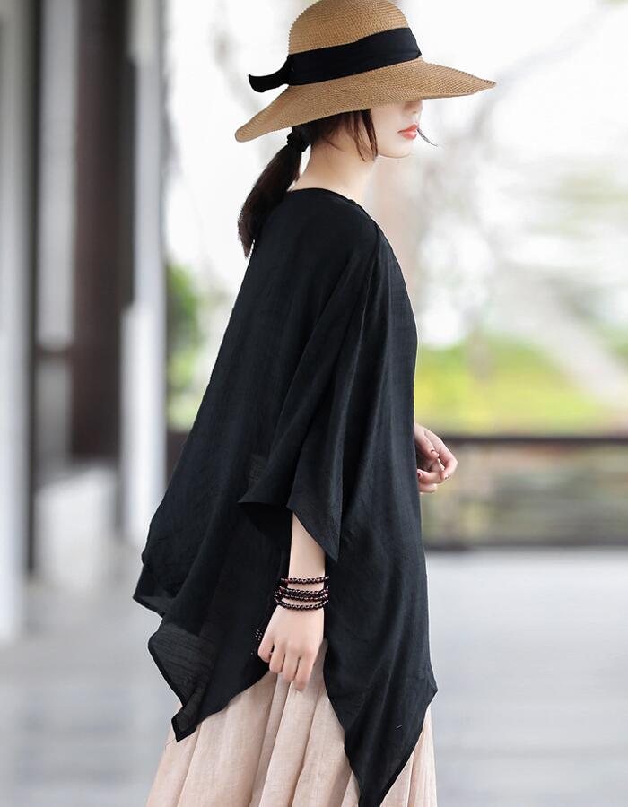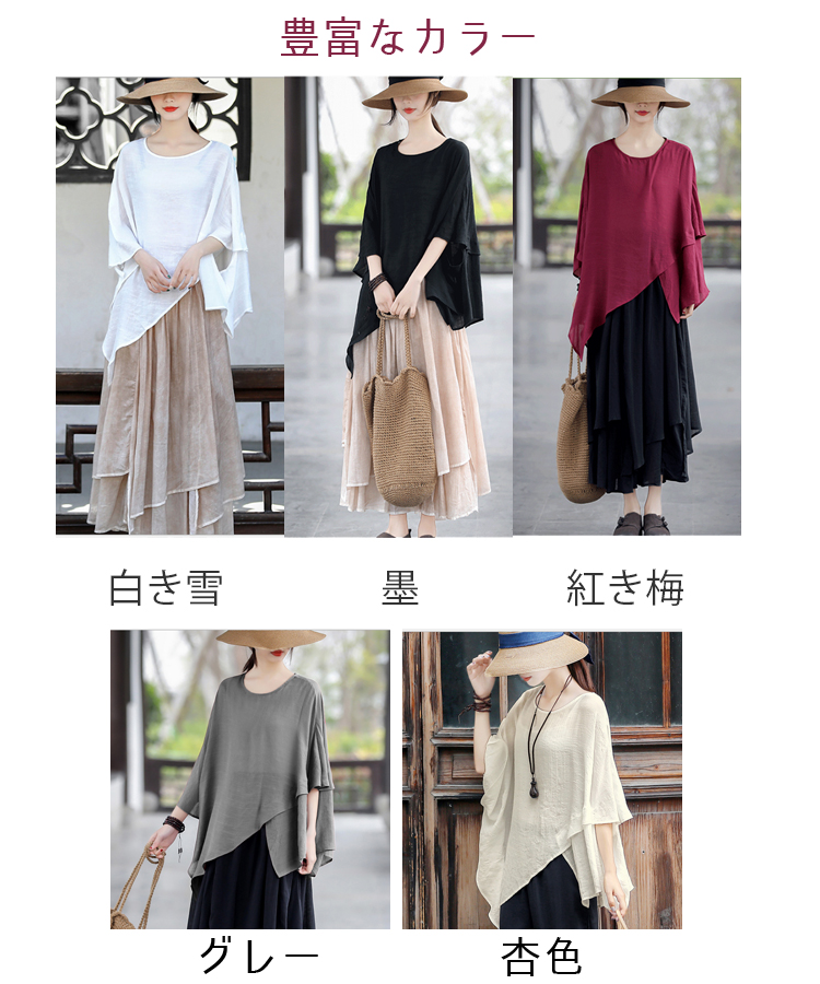 袖丈2TYPE選べる ケープ ブラウス レディース 長袖 半袖 アシンメトリー トップス フリル ケープカラー ビッグカラー 二の腕カバー 変形デザイン モード系 きれいめ おしゃれ 無地 春 夏 秋 冬 体型カバー 送料無料