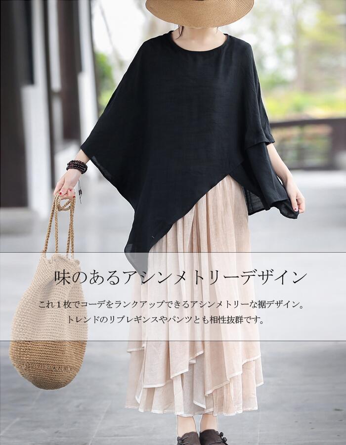 これ1枚でコーデをランクアップできるアシンメトリーな裾デザイン。