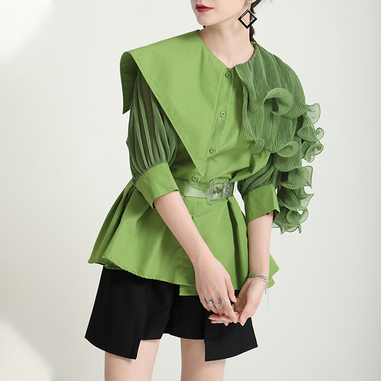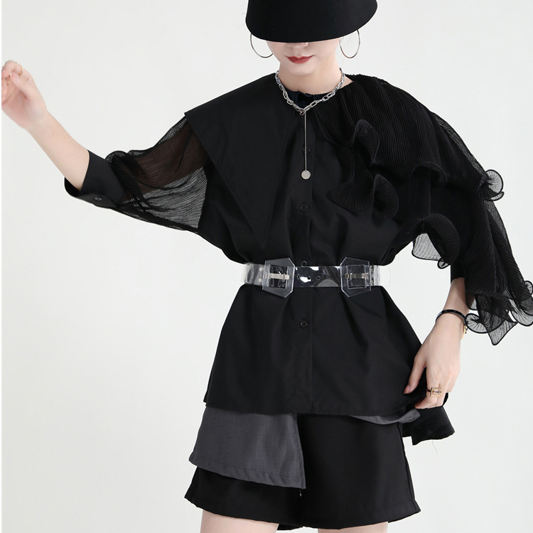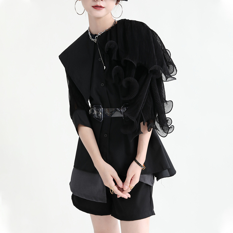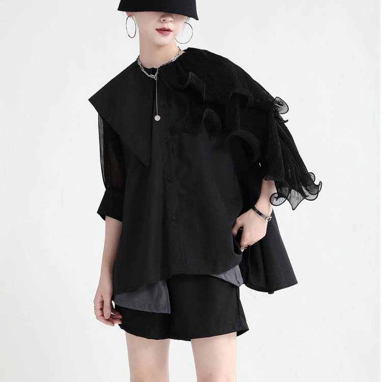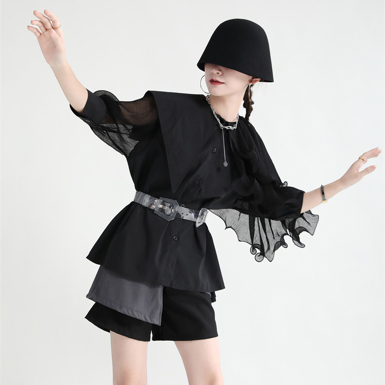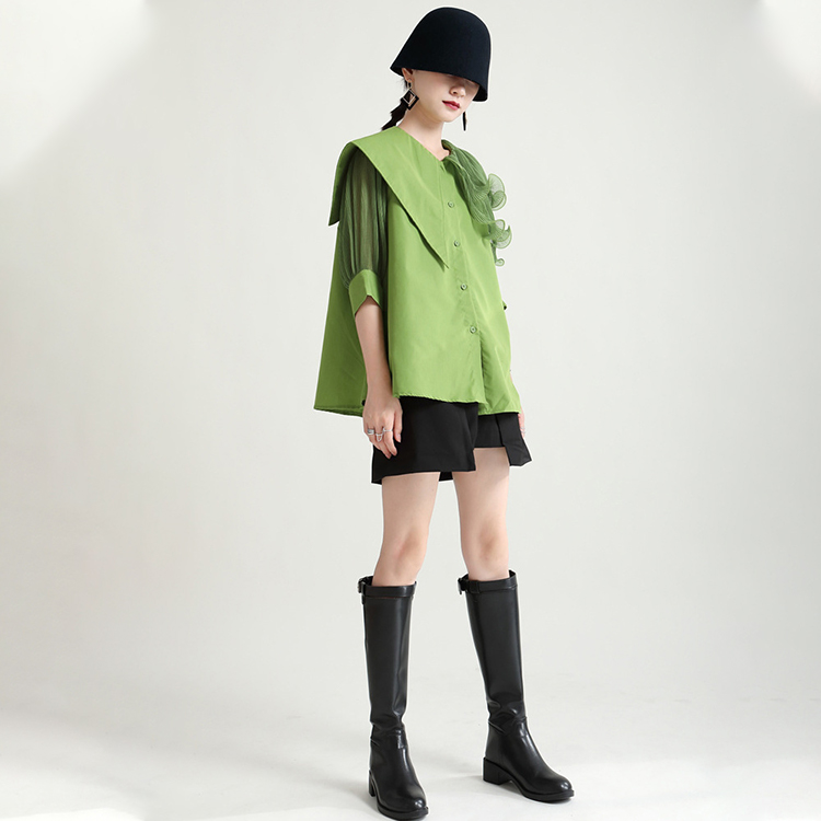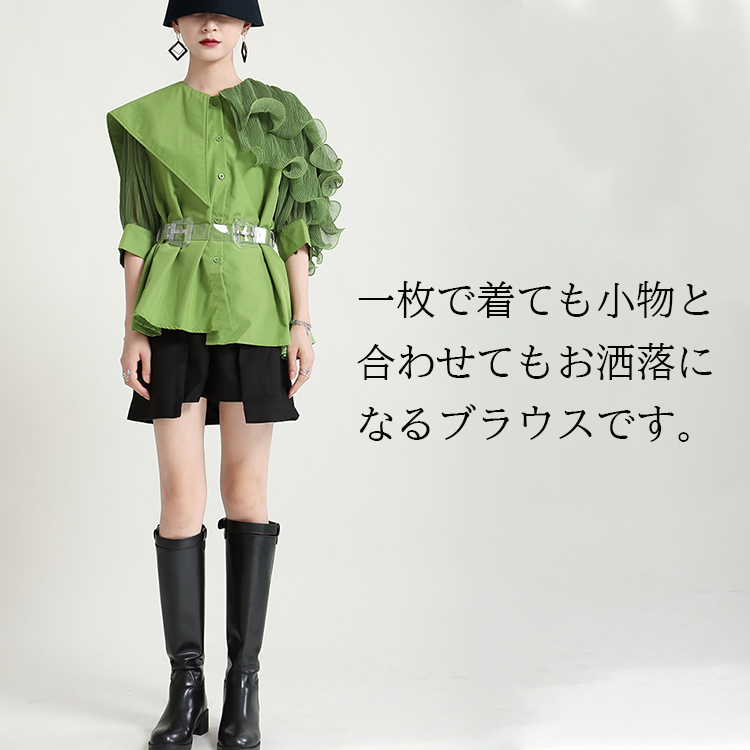 シアースリーブ ドッキングシャツ ボウタイシャツブラウス