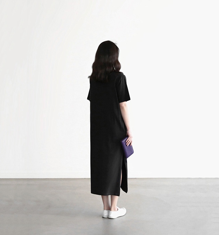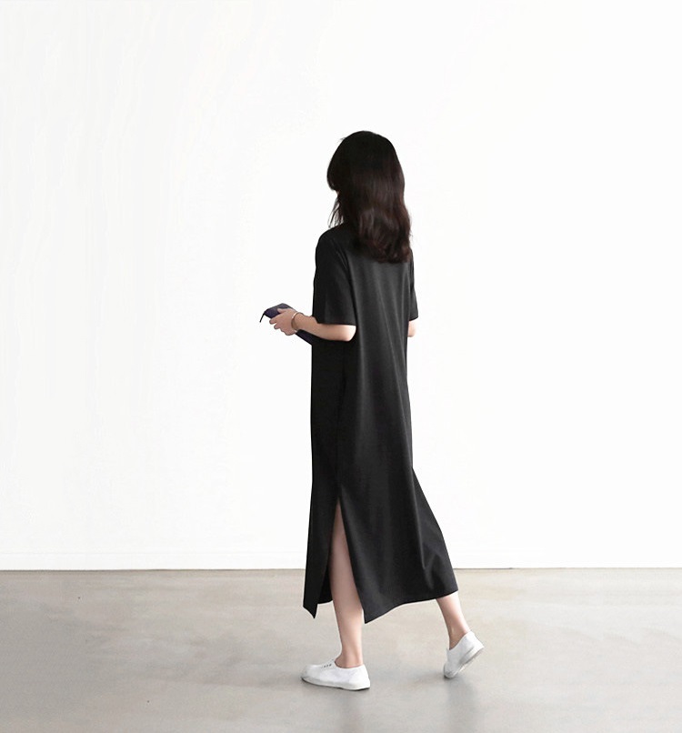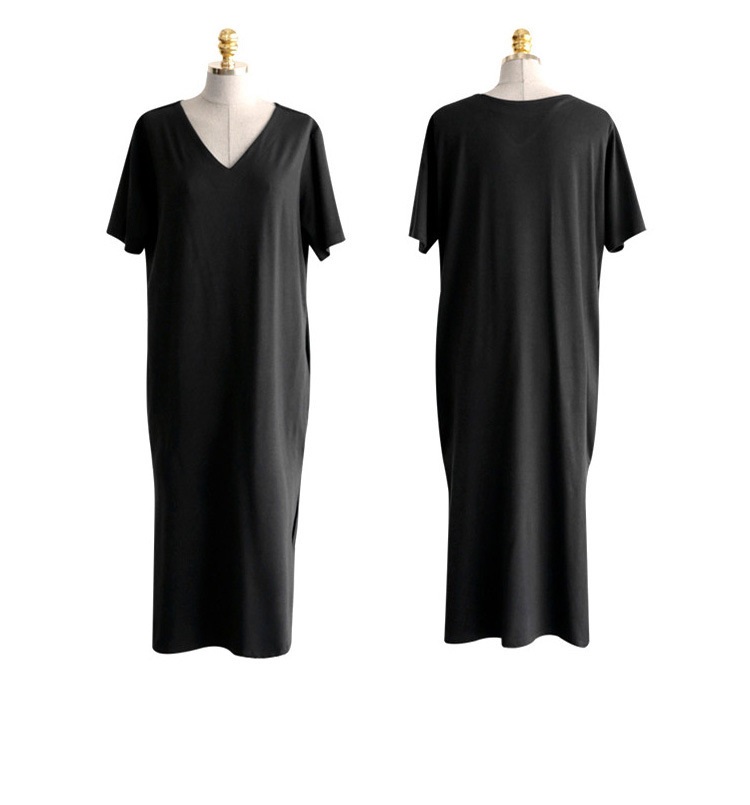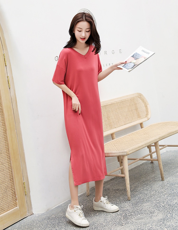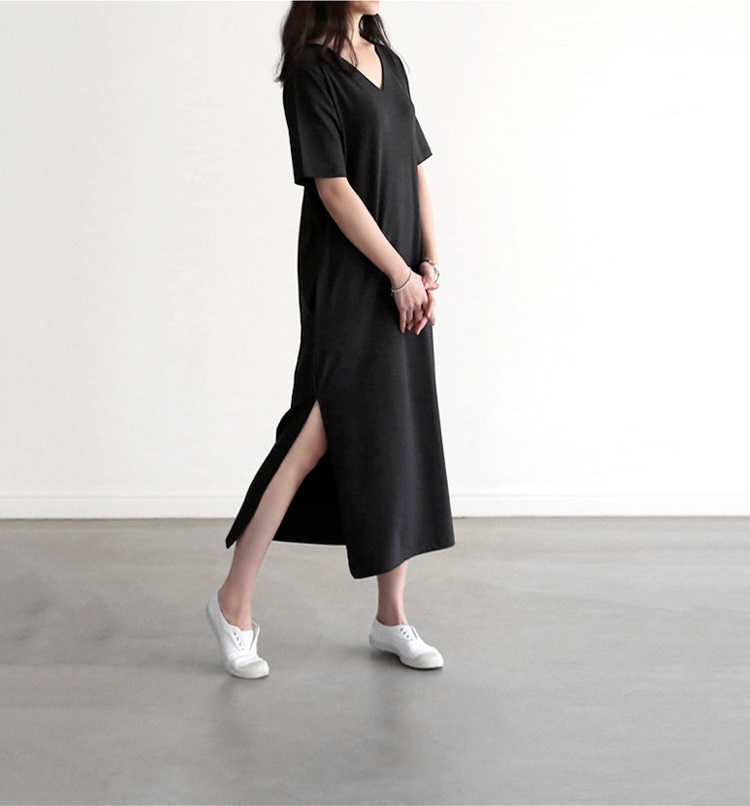 tシャツ ワンピース レディース 夏 半袖 Vネック tシャツワンピース ルームウェア ワンピース ロングワンピース スリット 柔らか 綺麗 通気性 吸湿速乾 部屋着 シンプル 敬老の日 プレゼント