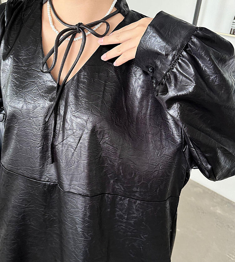 シアースリーブ ドッキングシャツ ボウタイシャツブラウス