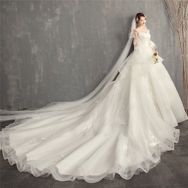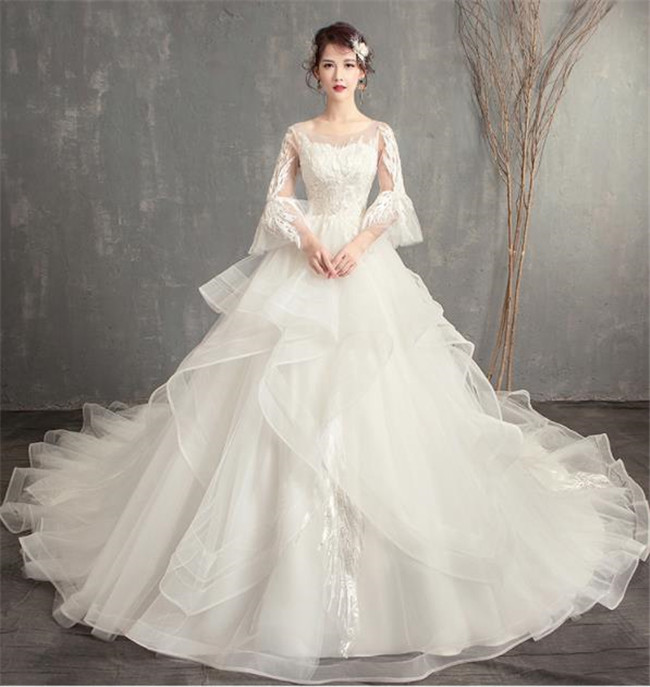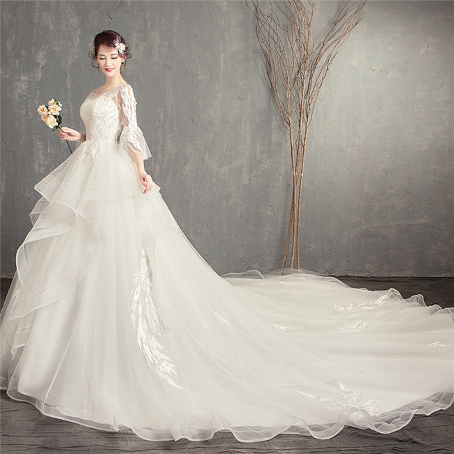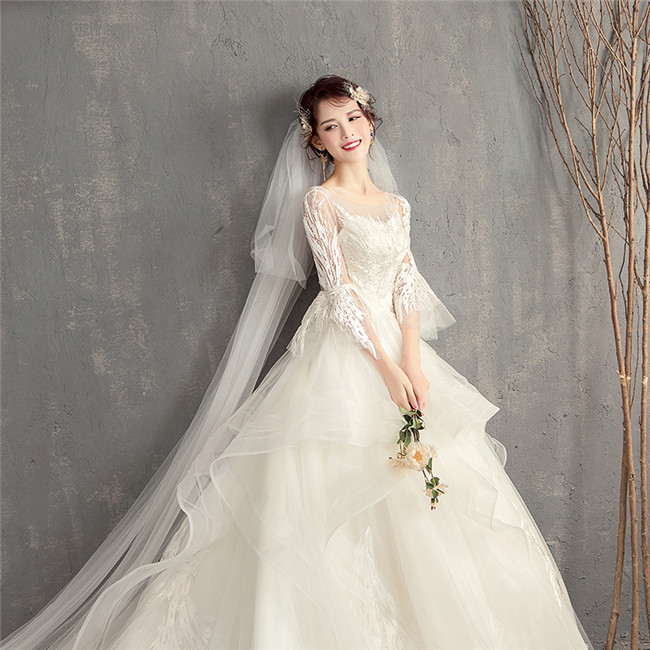 ウェディングドレスAライン 七分袖 ロ
