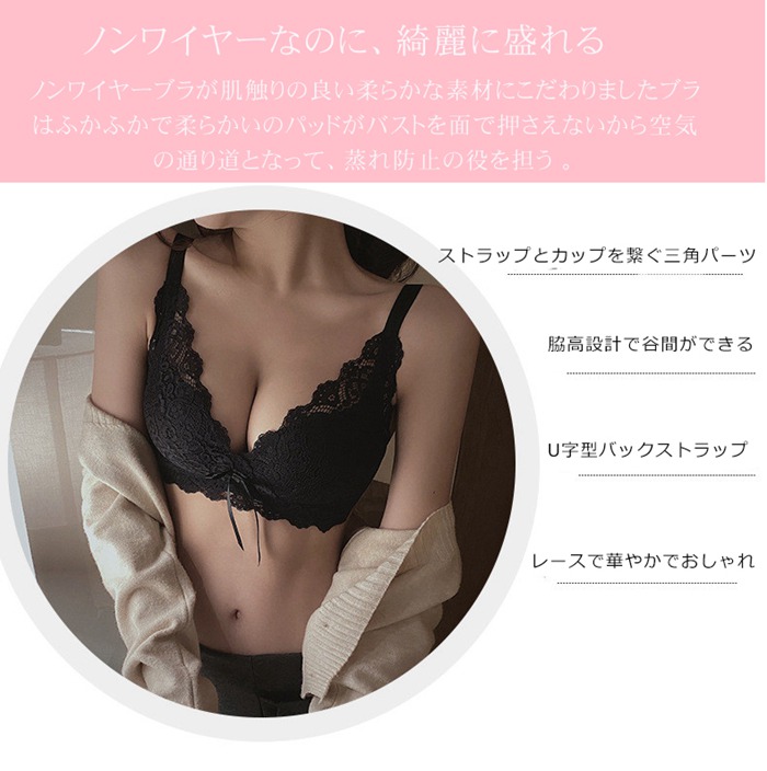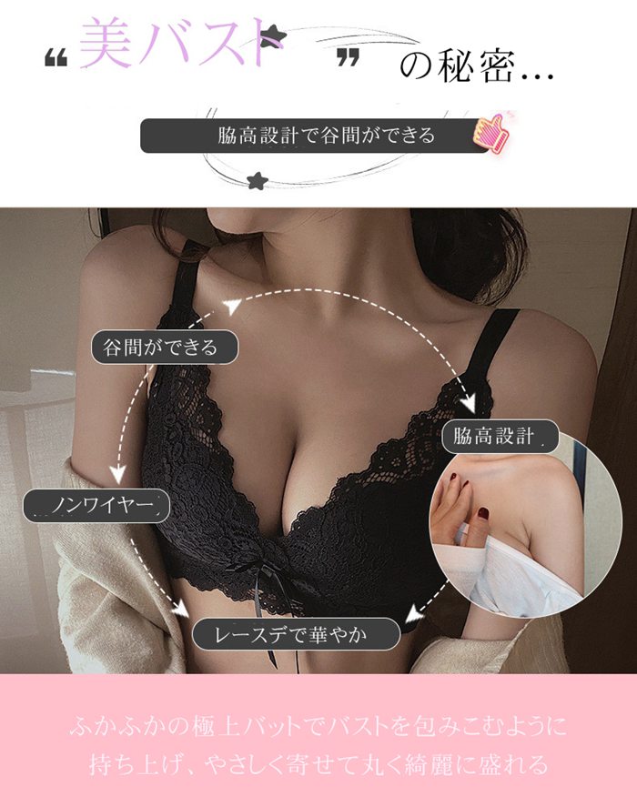 ノンワイヤー 総レースブラ 美胸 美背