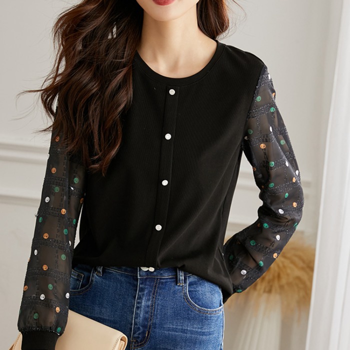 ブラウス ニットトップス 切り替え カ