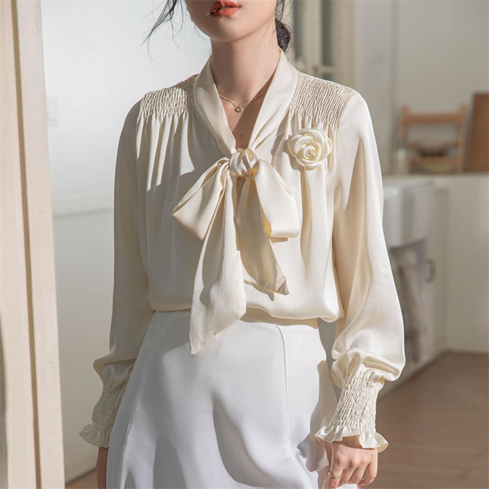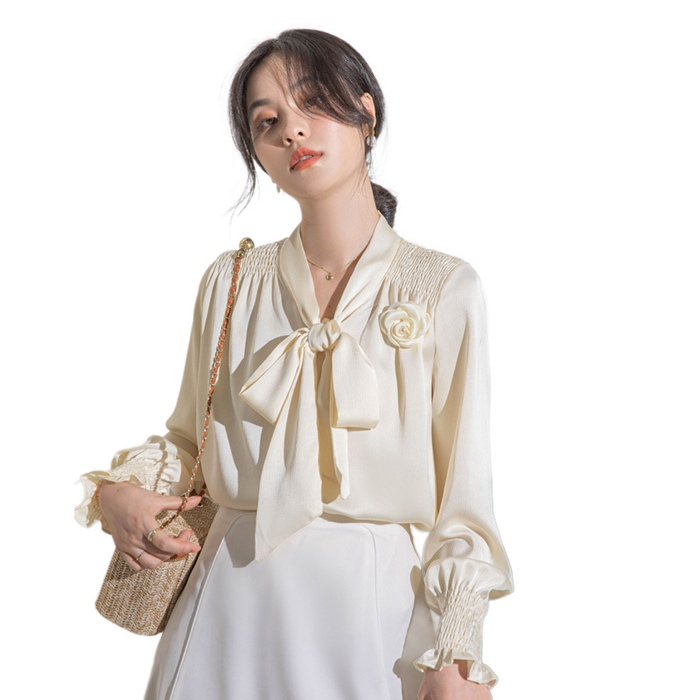 シアースリーブ ドッキングシャツ ボウタイシャツブラウス