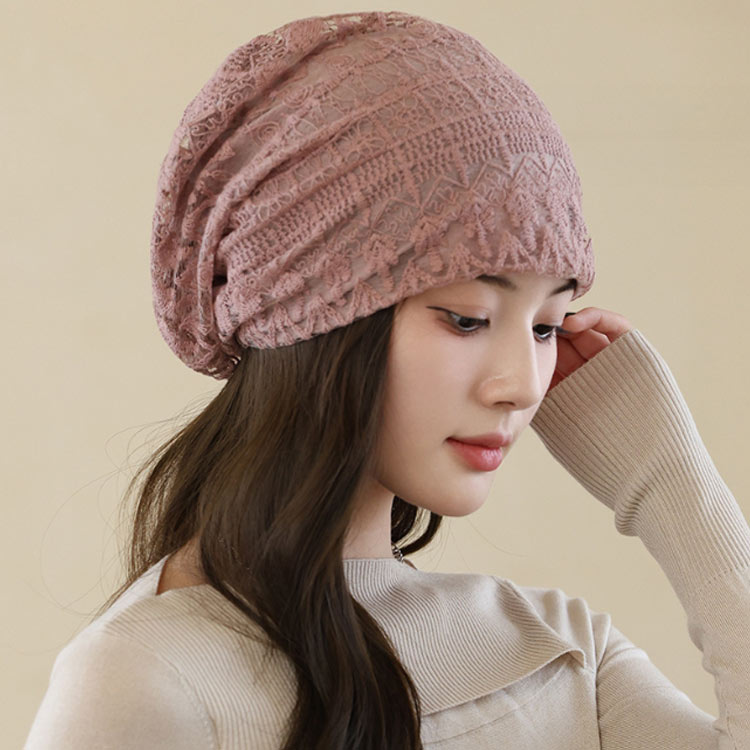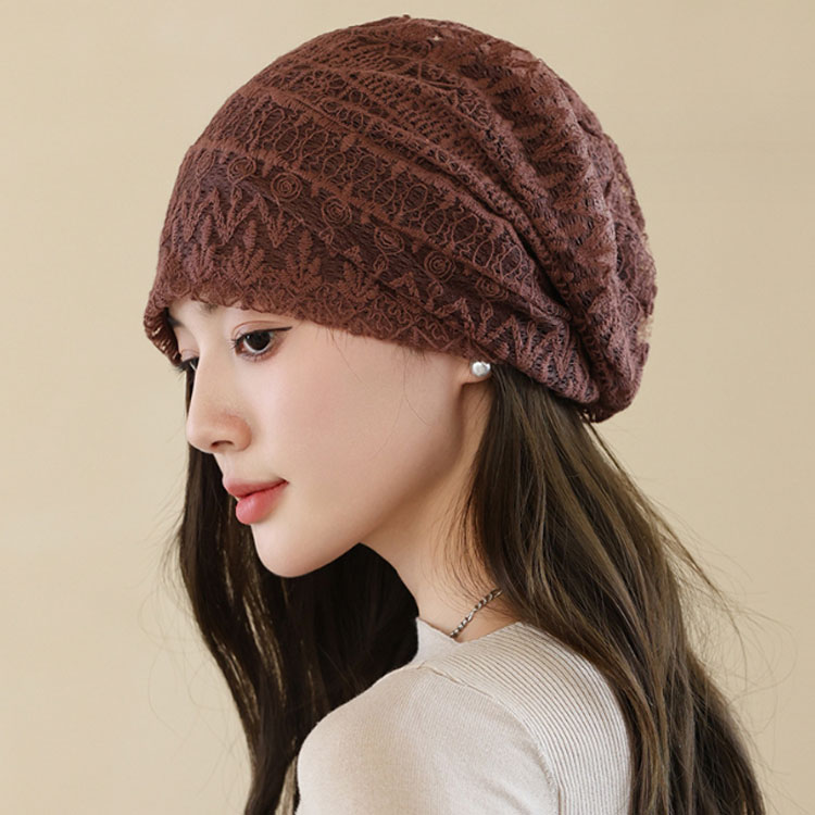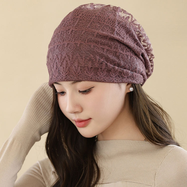 軽い 薄い 花柄レース 帽子 医療用帽