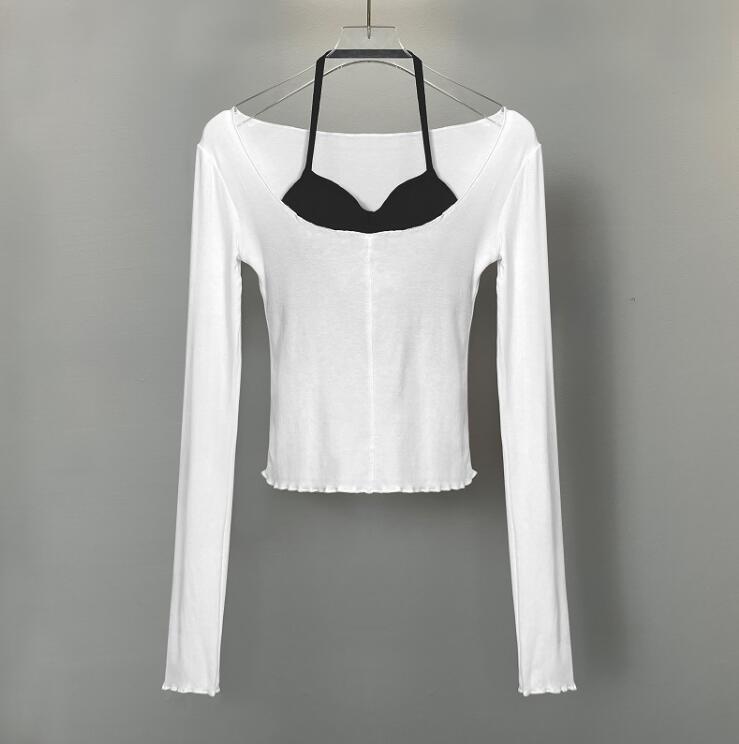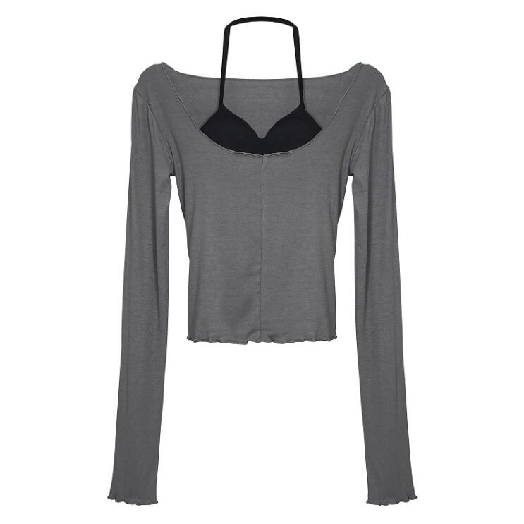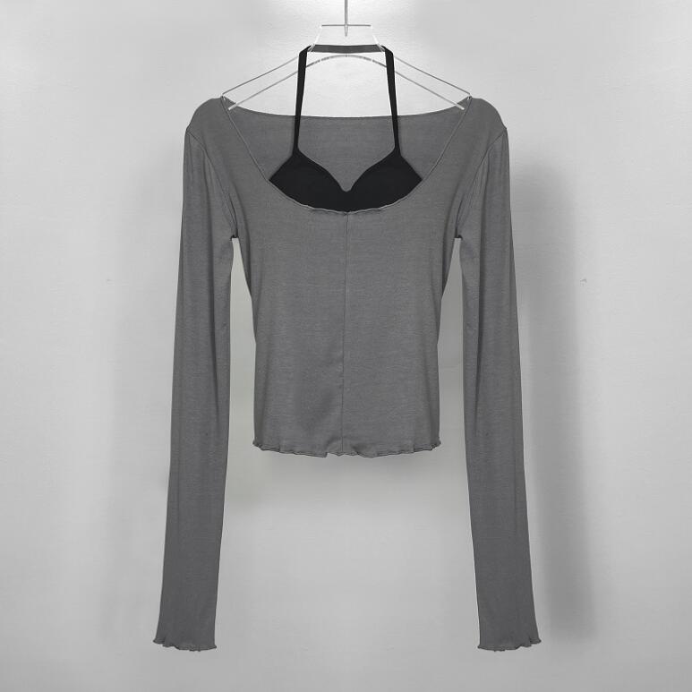 2color レディース カシュクール ロングスリーブ Tシャツ トップス Tシャツ シャツ カシュクール Uネック 長袖 ルオーバー 無地 フェミニン 大人可愛い