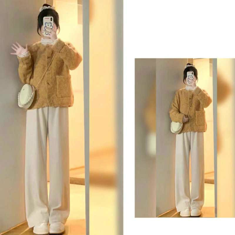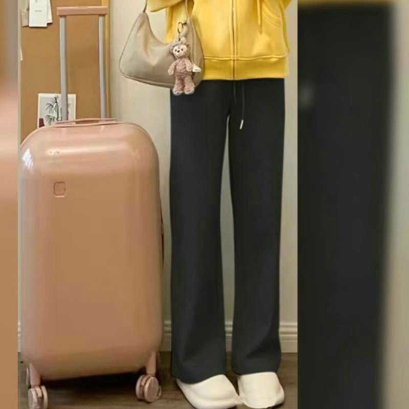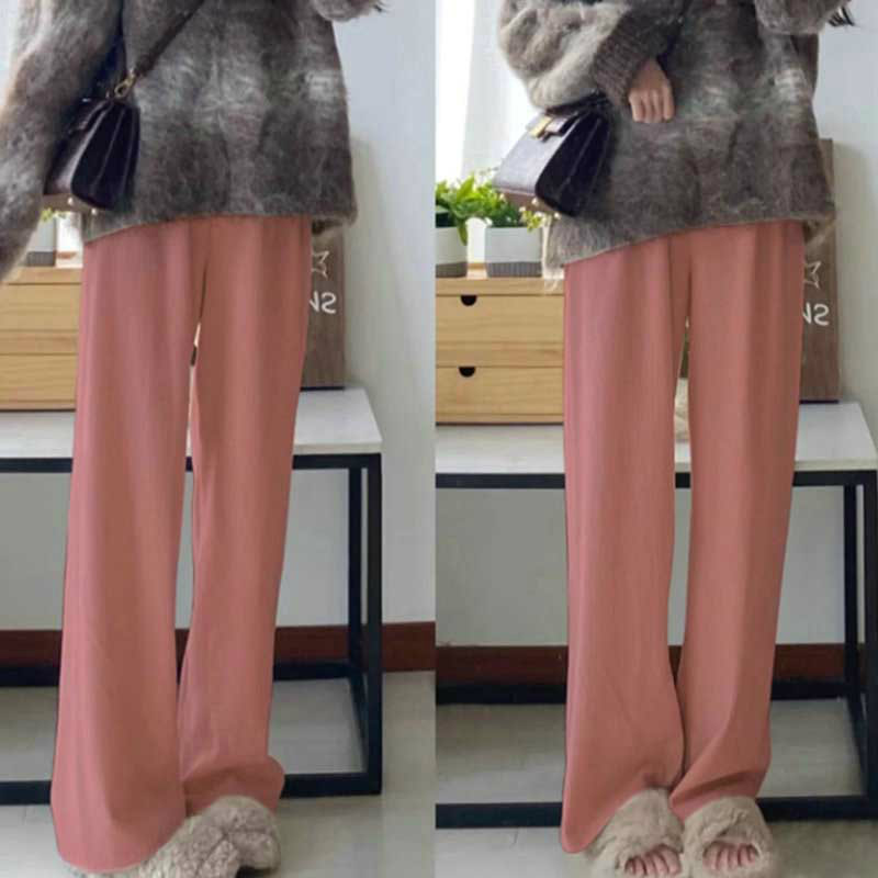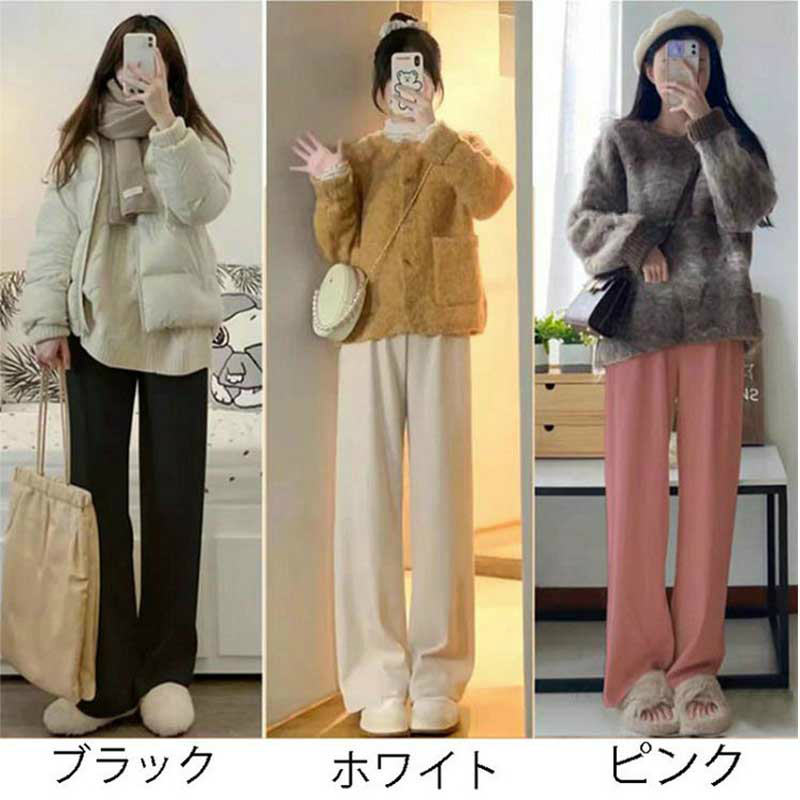 レディース伸縮性リブニットストレートパ